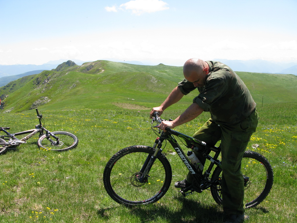chlapík v šlapkách sa hneď vybral jeden bajk vyskúšať a my sme si pozorujúc ho vytvárali obraz o Čiernohorskej armáde :)) Evidentne sa nudil a my sme mu poskytli aspoň nejaké rozptýlenie.