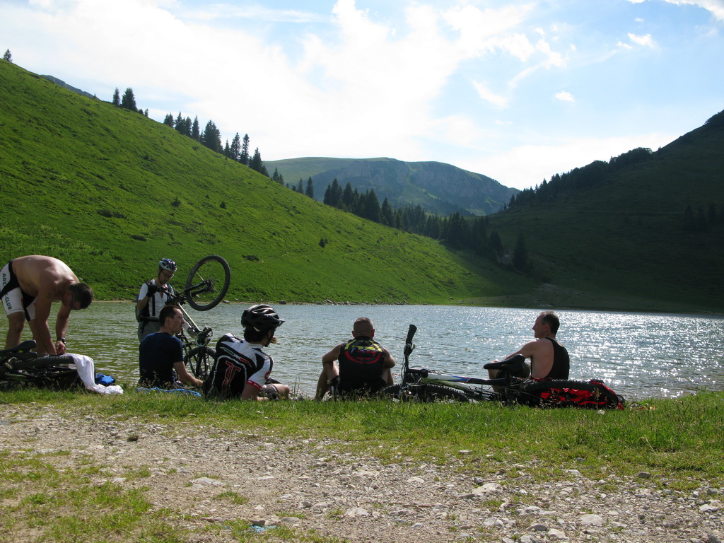 Pri jazere nebol nikto a tak nosiť plavky by bolo zbytočné... Na záverečný úsek cesty sme sa rozdelili na dve skupiny. Jedna viac videla, druhá si dala krajší zjazd.