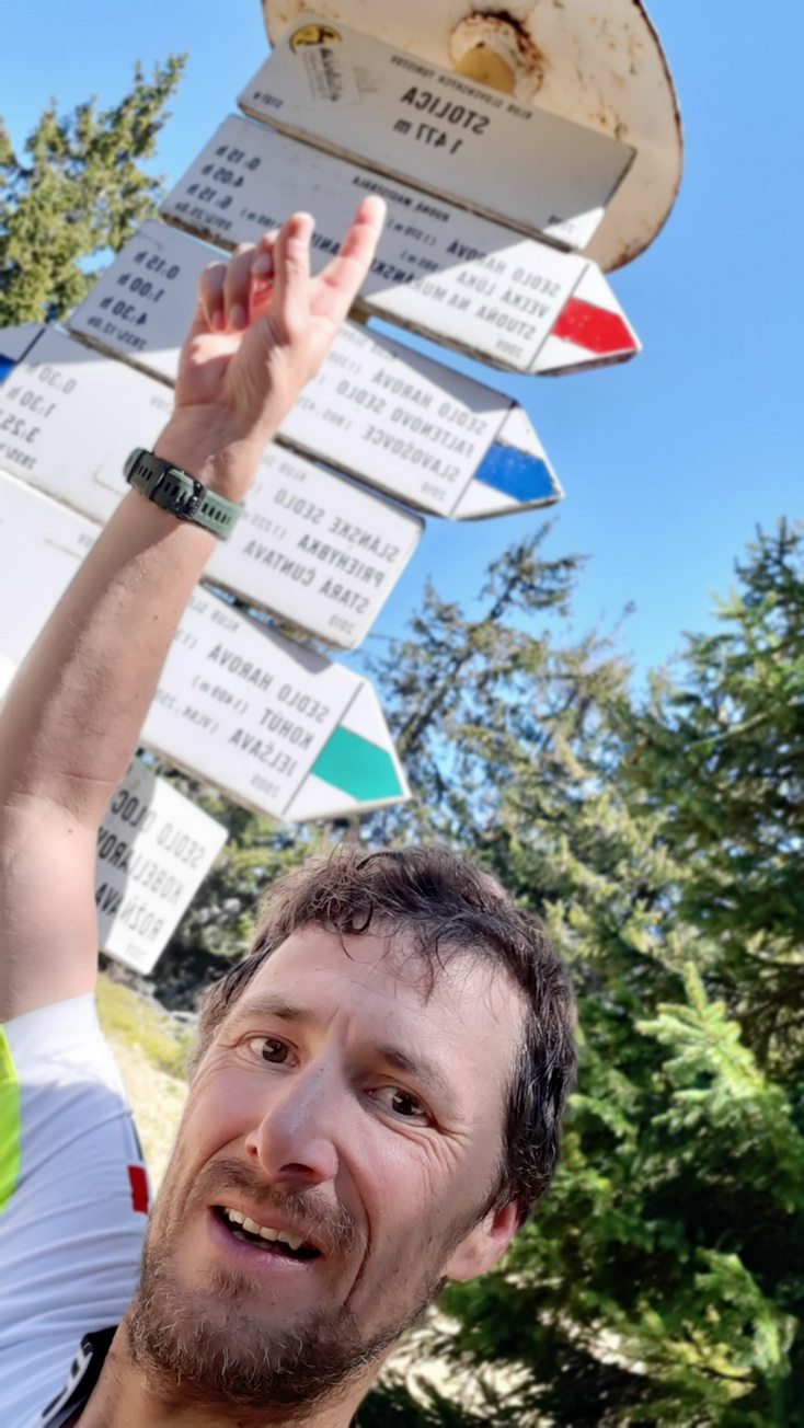 Som tu prvý raz, teším sa, pozeral som týmto smerom neraz. Tento vrchol mi je povedomý z ultrabežeckých výkonov na trase rudnej magistrály ktoré sledujem na stránkach Slovenského ultratrailu. Napadá ma myšlienka čo tak sa pokúsiť prejsť to na bajku? Samozrejme na jeden záťah. Že tam isto bude treba aj niečo potlačiť? Ale veď to je v Alpách úplne normálna vec. Nuž možno raz niekedy...