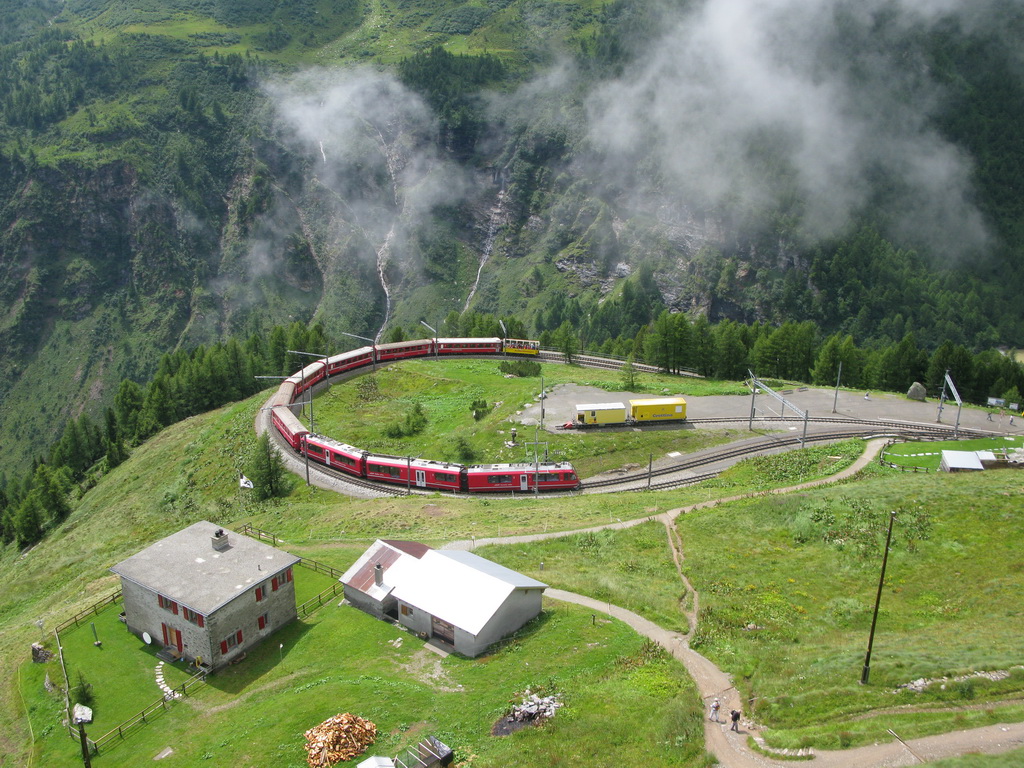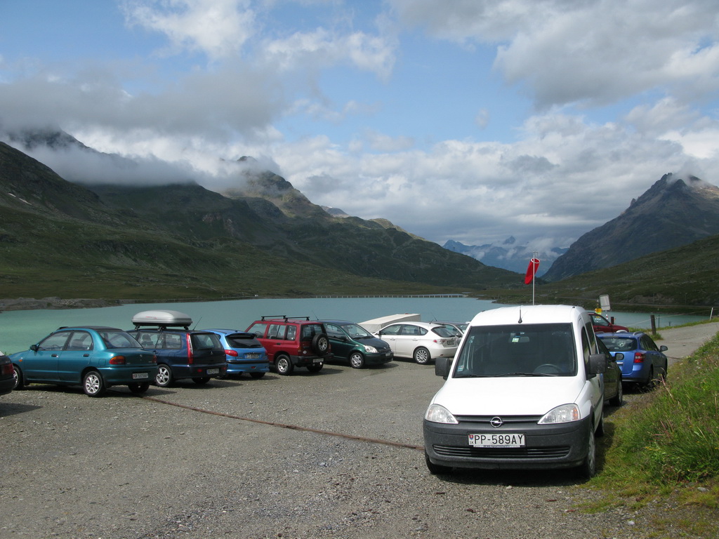 Na veľkom parkovisku pri Bernina Hospiz túto sezónu vidíme prvý raz parkovacie automaty. Schádzame z parkoviska dole smerom ku vlakovej stanici a tam nachádzame parkovisko, ktoré je zatiaľ zadarmo. Tu pri stanici vláčiku začíname našu túru, ktorá pôjde tentoraz takmer výhradne dole kopcom.