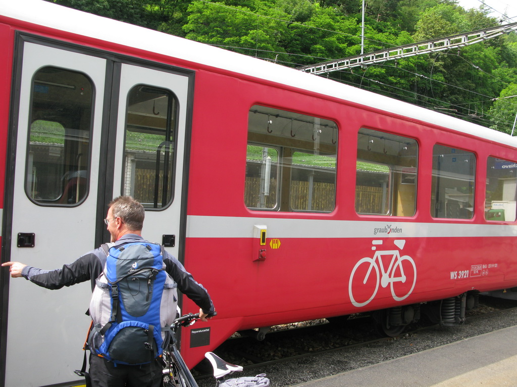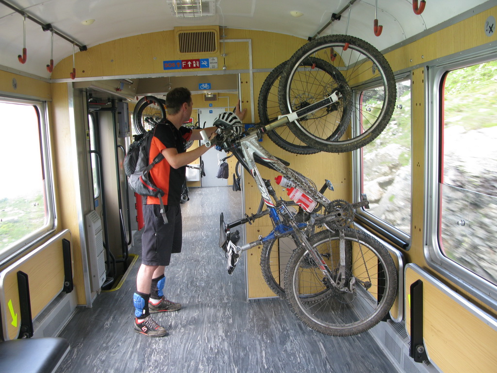 Miro to tu už pozná, mierime rovno ku stanici, kupujeme lístky za 22 CHF(bajk stojí toľko čo človek) a čoskoro už nakladáme špinavé zablatené stroje do vagónu špeciálne určeného na ten účel. Po ceste späť si vychutnávame výhľady spolu so šikmookými turistami s veľkými foťákmi.