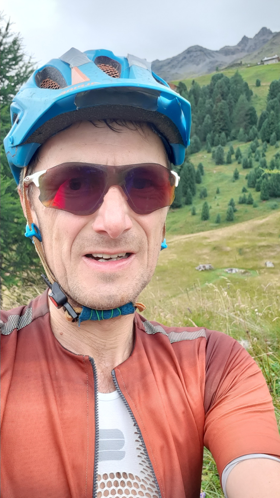 Ráno vyrážam tesne po siedmej z Rosegu v ústrety oloveným mrakom a teplote okolo 10 stupňov. Vzápätí ma chytí krátka prehánka... Kua veď dnes nemalo pršať! Pokračujem z Pontresiny asfaltom na Berninapass. Je chladno, ale prehánka rýchlo skončila, našťastie. Zo sedla zjazdujem po asfalte až po Sfazú, kde odbočujem na šotolinu do Val di Campo.