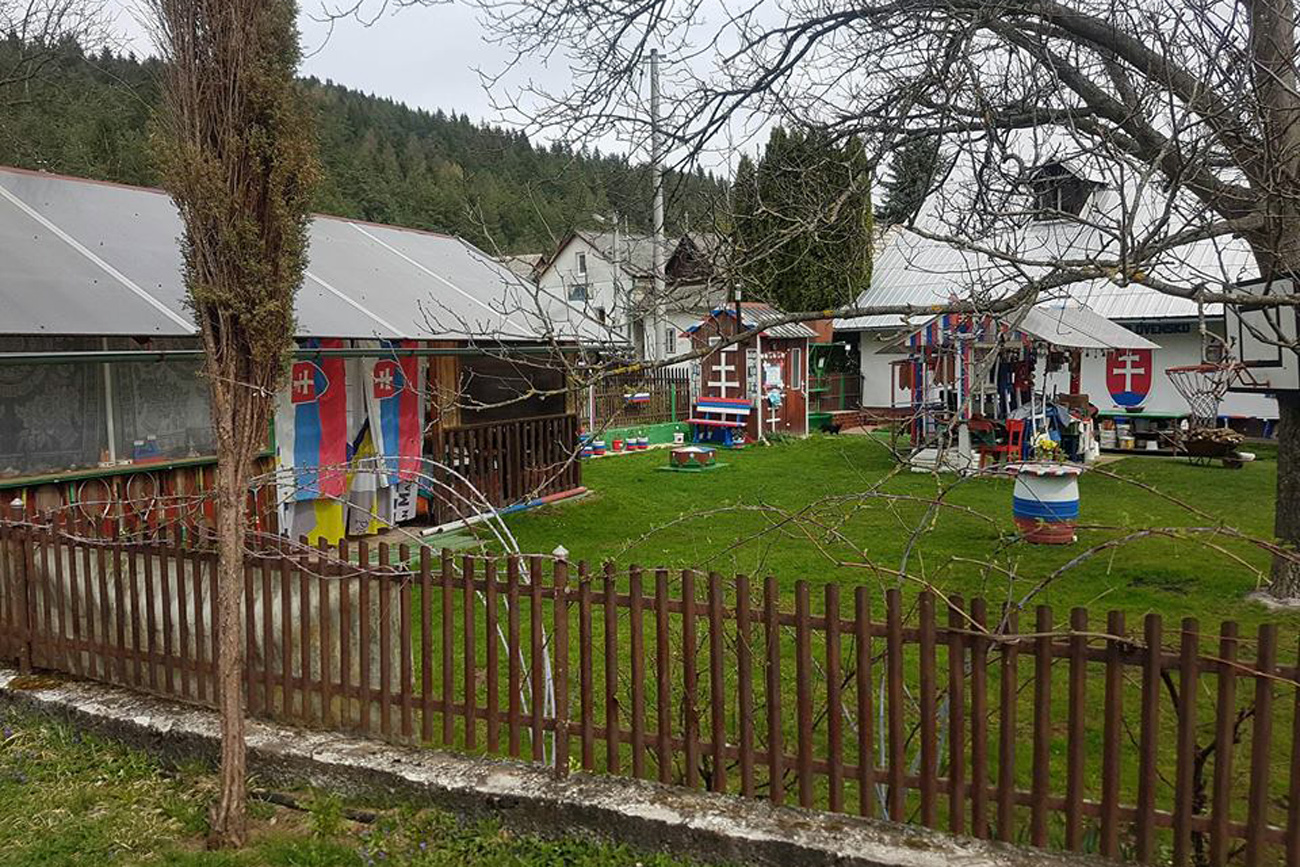 Bidóny ešte plné, ale neodmietli sme maličké odbočenie k prameňu minerálky nad Ondrašovou. No koľko chceme môžeme pumpovať, ani kvapka. Čo to? Ale nevadí, neďaleko ďalšia atrakcia, ako pre turistov z Japonska. Miestny hrdý, „roduverný“ Slovák má okolo domu všetko ponatierané farbami trikolóry, to je známa vec. Ale že aj jeho biely pes musí mať na hlave modrý a červený pás??? No dobre teda :-)