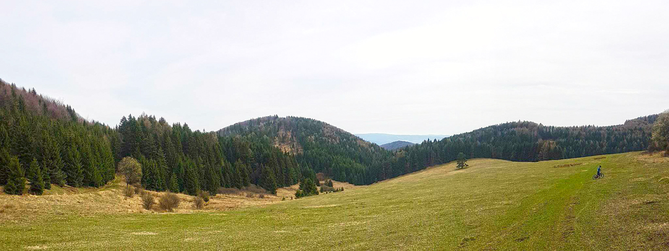 Z Polerieky: reku dáme aj kopček, aby zadky neboleli, nech si to trochu aj nohy užijú. Ďalej na juh by to aj tak nešlo, len po hlavnej, tak sme to rubli doprava hore dolinou, na lúky pod Závozmi. Tam po zaslúženej zaberačke dobre padlo poležanie na golfovej trávičke (potom o dva dni som si prvého tohoročného kliešťa oddrapil). Cukrové bomby padli do brucha a keďže kompjúter zahlásil 40km, povedali sme si, že teda načim aj k domovu to otočiť...