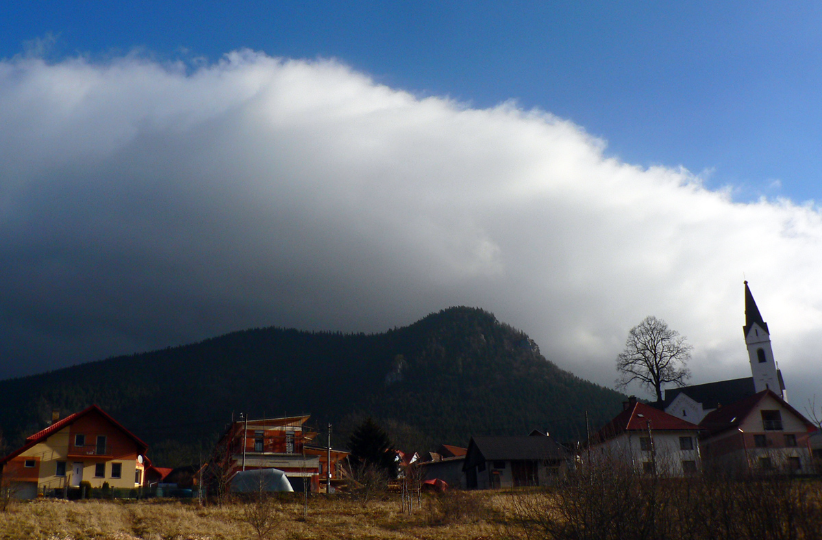 Hotel síce otvorený, ale nečapujú, ksichty sú ešte kyslejšie, lebo slinky začali tiecť. Tak už len chytro domov, k plným misám. Blíži sa poludnie, nápor na kopec vrcholí. A dedina oparkovaná na každom voľnom pľaci, samozrejme. Zato parkovisko prázdne, len my a miestna hasičská Avia. A nad protiľahlou Tlstou horou jasno, tiež samozrejme. Dnes to chcelo nižší kopec, ale kto ráno vedel? Aspoň sme dobre pretrávili, budú koláče lepšie chutiť.