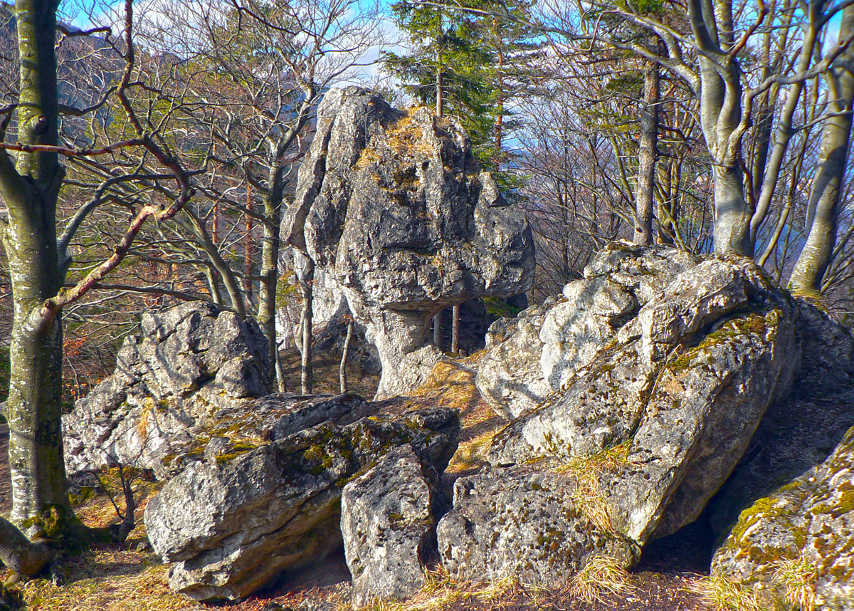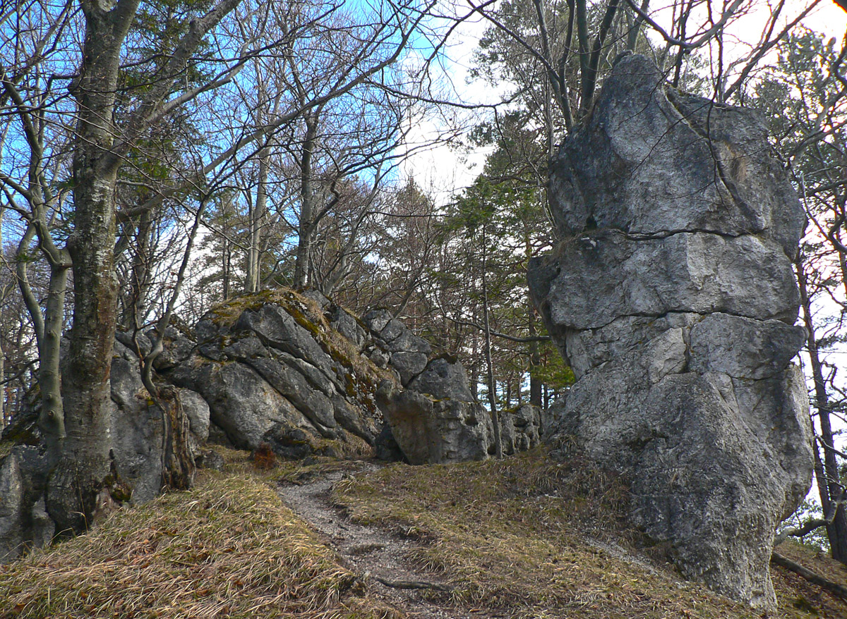 Neoplatí sa ale hneď vracať dole tou istou cestou, aj susedný kopčok Kojšová má čo ponúknuť. Od rozhľadne je to na jeho vrchol ďalšia asi polhodinka, ale už v miernejšom sklone. Len úplný záver zo Sedla pod Kojšovou je strmý ako začiatok, ale zato kratučký. Hore čakajú v riedkom borovom lese bralká a skalné veže. Najznámejší je Kojšovský skalný budzogáň, vysoký skoro ako tá rozhľadňa. Na najväčšej veži je dvojkríž. Z nej aj zo susednej je parádny výhľad na susedný kameňolom – to aby sa človek pripravil na „vizuálny šok“, ak sa rozhodne nevrátiť rovnakou trasou, ale spraviť okruh nazad do Strečna.