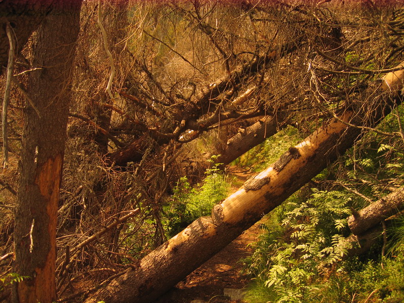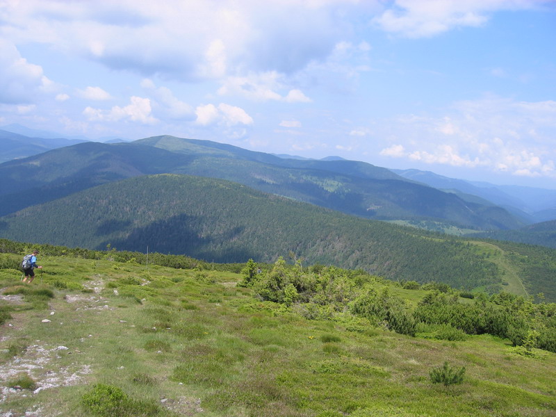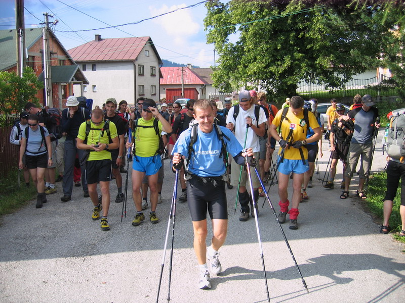 Výstup na Kráľovu Hoľu nebol najpríjemnejší – pod nohami to žblnkalo a nad hlavou bzučalo, k tomu dusno ako v práčovni, čoraz tmavší mrak nad vysielačom, no nič moc perspektíva... Prvý úsek hrebeňa po Priehybu bol už samozrejme príjemnejší, aj mraky sa začali trhať, čo nás milo prekvapilo. Len sme sa trochu divili hrdému označeniu „E8“ na zarastenom chodníku s dávno neobnovenými značkami. Na druhej kontrole v Priehybe sme si uvedomili, akú zákernú taktiku si na nás organizátori prichystali: ochota, milý úsmev, kofolka, auto prichystané na odvoz odpadlíkov do civilizácie... Ale to ešte väčšina dvojíc mala guráž a „úmrtnosť“ bola minimálna. Lenže čakal jeden z najhorších úsekov – takmer bez výhľadov, zato buď so zarasteným chodníkom, alebo s vývratmi, rozbitými zvážnicami a holorubmi („Už tam budem? Ne!“).