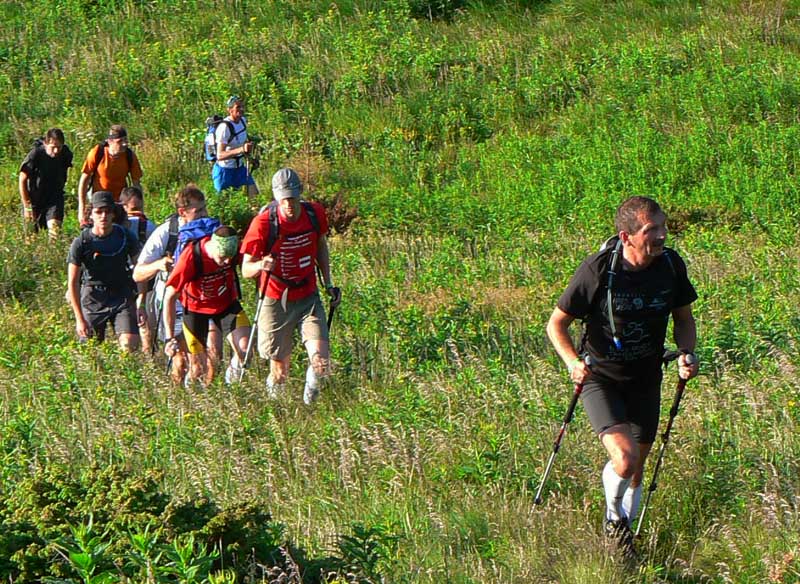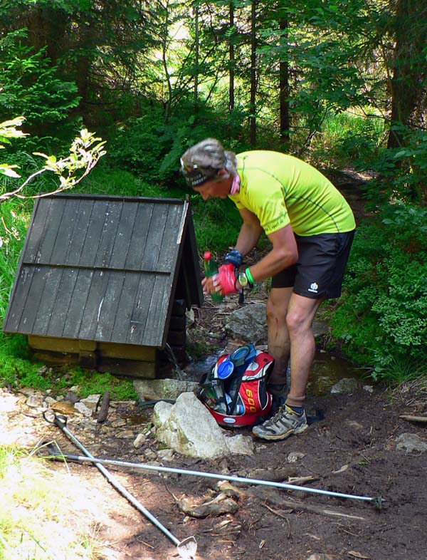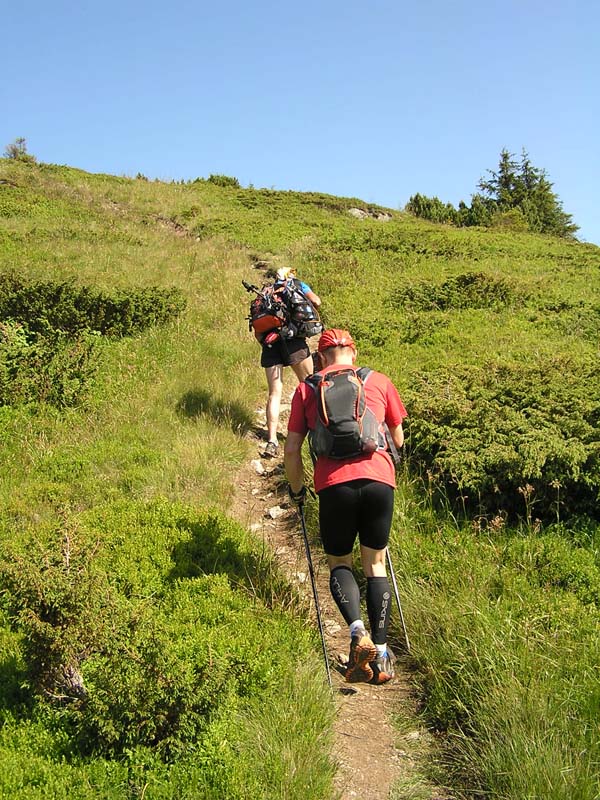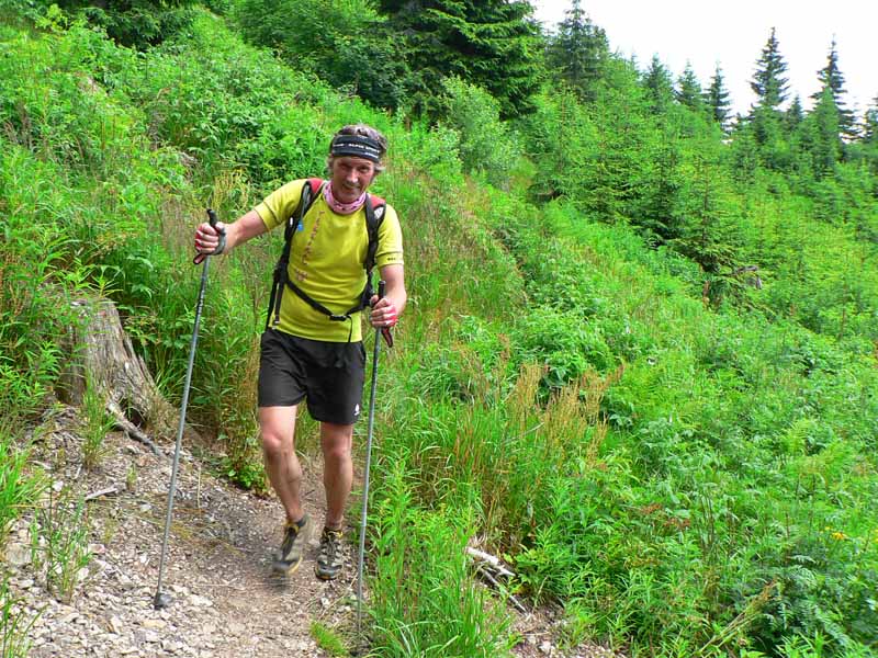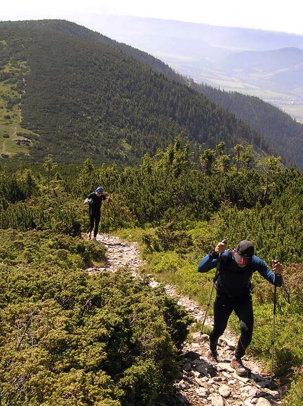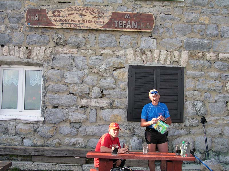 Zákernosťou od organizátorov sú „švédske stoly“ na Čertovici, ani sa nečudujem že tu polovica štartujúcich ostala :-) Ten oštiepok som nezjedol, ale zožral! A keď už som nevládal, zbadal som na lavici nenápadný pohár s nutelou... Ale vraj my tu vzadu sme pohodári, prvé dvojice prileteli, narobili bordel a šprintovali het. Tak im treba, nám viac ostalo. Grgajúc sa plazíme na Lajštroch a teplota neklesá a nie a nie. Aspoň už tu visí sem - tam nejaký mrak a pofukuje. Míňame zopár „opaľujúcich sa stíhačov“. Smola, kríza príde raz na každého, hádam ju zaženú. Ďalšia kofola na Štefáničke, už ich ani nerátam. Na Kamienku je to ozaj len na skok, tešíme sa na kamenný čaj a kokosové myši. Po Poľanu máme fajn sprievodkyňu, ktorej strašný vlkolak Dorka nám hrdinsky prebíja cestu cez stáda útočiacich kamzíkov. Ďakujeme za spoločnosť.