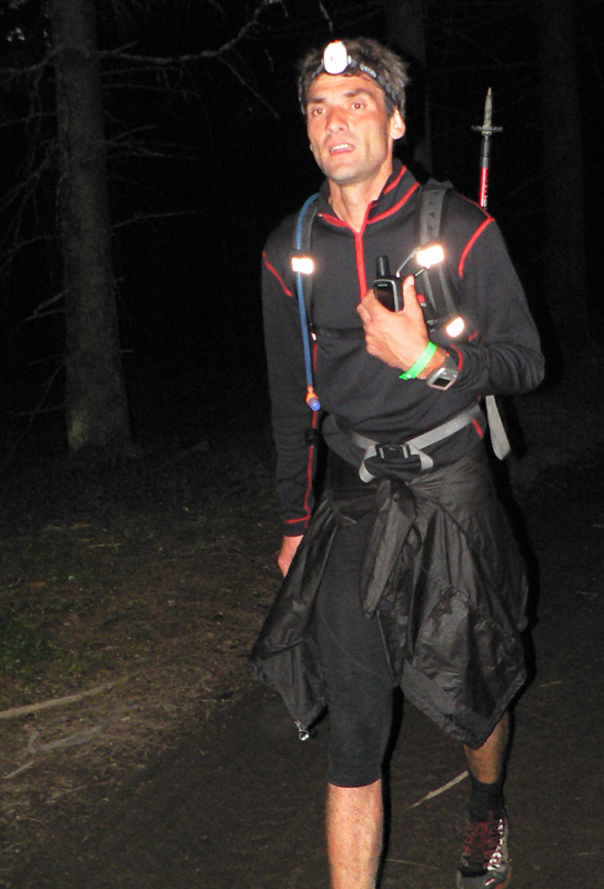Skorý ranný štart a vysoké oblaky nám umožňujú vidieť, čo máme ešte pred sebou. Prašivá kdesi na konci sveta. No tak sa posúvame. Parťák akosi nespomaľuje, vraj sa spolieha na stareckú vytrvalosť. Začínam tipovať, kedy mne dôjde mladícke nadšenie. Ešteže mám ten kontrolný papier ja a nie on :-) Na Ďurkovej rušno ako v meste, keksík, čajík a frčíme. Toto nie je turistika vážení! O desiatej na Chochuli nahadzujeme čelovky, to prvé stíhačky už v cieli brzdia. My sme len také staré dvojplošníky. Ale kríza nikde, tak poctivo valíme ďalej, dokonca si dovolíme sem-tam bezdôvodne pobehnúť. Pod Prašivou v lese motivačné nápisy na zaháňanie medveďofóbie (dokonca v poľštine), kontrola v Hiadeľskom sedle sa asi veľmi nudila. Dokonca si pripravili test, kto z nás ešte dokáže čítať: vylosuj si a prečítaj vtip. My sme si vytiahli dobrý, nepublikovateľný. Ale asi sme uspeli a prečítali, lebo nás pustili ďalej.