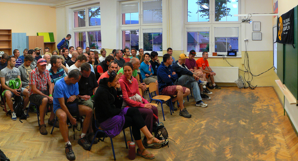 Piatok podvečer, cesta busom Horehroním do Telgártu vedie aj cez jednu z tých „miestami prehánok...“, keď šofér pre lejak nevidí poriadne na cestu. Pekná perspektíva na zajtra... Ale privítanie v škole je tradične v pozitívnom duchu: zas o kúsok premakanejšia logistika, viac pokynov, plagátov, zvítaní, dobrovoľníkov, zicheriek, igelitových vriec... Rado má zas o kúsok neprítomnejší pohľad a Ľubo o kúsok krajšiu prezentáciu. Len pretekárov furt rovnaký počet, úrady viac nepovolia a nie a nie a nie. Teda škola premenená na ubytovňu a kanceláriu nepraská vo švíkoch, zato pizzeria tradične hej, zas má mesačnú tržbu za jeden večer. Prehliadku povinnej výbavy som skúsil obabrať ukázaním foťáku, nestačilo im, tsss... Ešte brífing, vraj máme používať nejaký haštag a nesmieme mať saport a na kontrolách máme byť milí na staf. Starnem, prestávam chápať, sori.