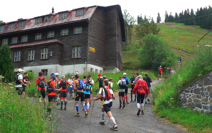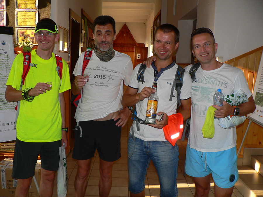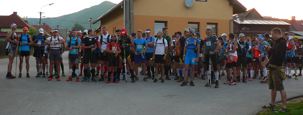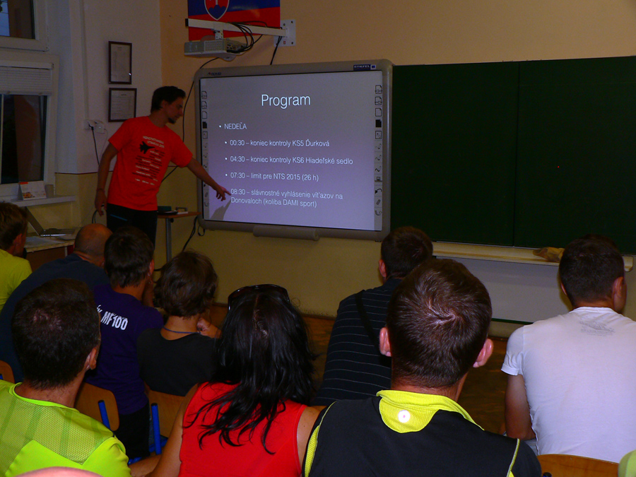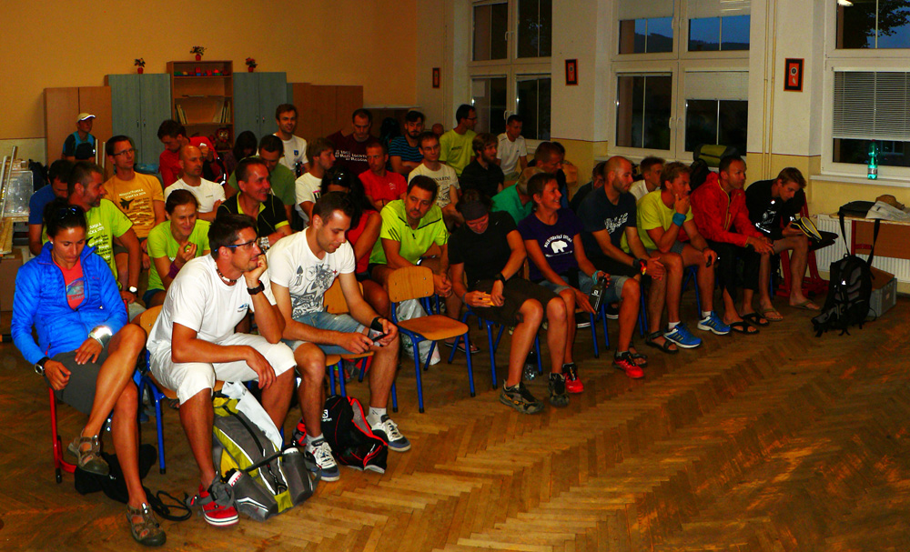 Tak zas po roku v miestnej škole – pôvodne malo byť epicentrum za dedinou v „resorte“, ale nejaké kapacitné problémy sa vyskytli... Prezentácia: tradičná v tom štýle, že foťák ako povinná výbava nestačí. Argument „čo nemám, nepotrebujem“, tiež nezaberá. Musíme vytasiť aj telefóny a žneme obdiv: dve (funkčné) Nokie 3310 už asi tak blízko seba nikde vo vesmíre nie sú. Spišská borovička po úspešnej prezentácii ide, niektorí noví účastníci spoza hraníc vyzerajú prekvapene. A čo? Dezinfekcia predsa... Aj pol buffky na hlavu fasujeme, na výber jesto... Inak na chodbe je super nástenka: kompletná ultrabežecká kolekcia nejakej novej domácej firmy na rok 2016: