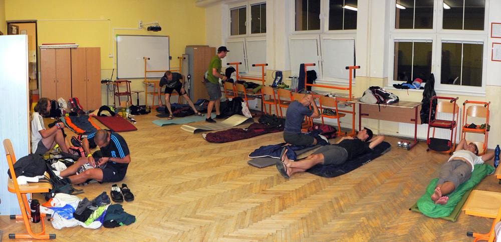 V triedach je v noci dáko prázdnejšie, niektorí predsa len spia v tom „resorte“. A noc je teplá, suchá, tak viacerí aj na tráve okolo školy. Na Telgárte to je dosť risk myslím, aj keď asi nikoho do rána neukradli. Jo a brífing som skoro zabudol: tradične ajťácky premakaná .ppt prezentácia o čom to bude, myslím že na poslednú chvíľu Ľubo aj odradil nejakých ľudí, lebo plný počet dvojíc ráno neodštartoval. Novinka – namiesto megafónu do ruky strojovňa na kolieskach, teeeda!