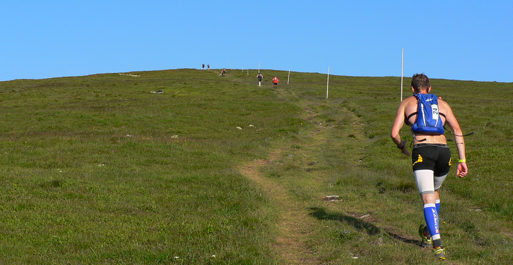 Prvý skutočný mordor nastáva v stúpaní na Veľkú Vápenicu: slnko ma mláti po hlave, od vypareného kosodrevinového oleja hustne vzduch a čoraz ťažšie je preraziť ho, gravitácia sa zvyšuje, nohy sa odmietajú prepnúť z režimu „zostup“ do režimu „výstup“. Po dvoch hodinách od štartu? No to bude deň... Druhý mordor v stúpaní z Priehyby na Kolesárovú: rovnaký scenár, akurát predbiehame prvých stratencov, ktorí sú viac rozmontovaní ako ja. Aj baterka vo foťáku už sa hádam potí...
