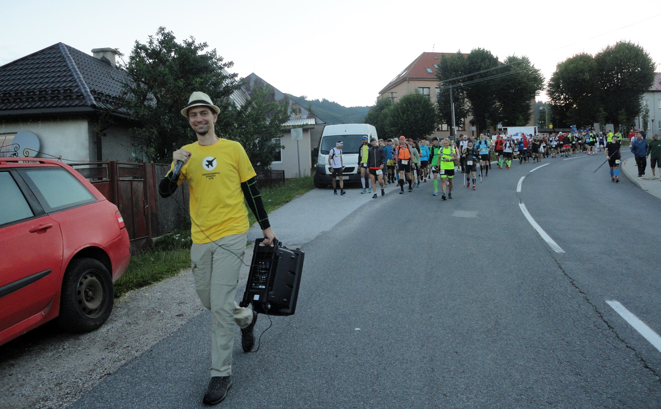 Ráno rojenie, tiež ako v úli, ako vždy. Vonku krásne, modré nebo, júlový jesenný horehronský chlad, dobre sa bude stúpať. Hoľu nevidno – našťastie, viacerým by asi vráska pribudla, hehe... Sprievod na štart – po hlavnej neprejde ani skúter. Hneď vidno, že je to väčšia masa ako po iné roky.
