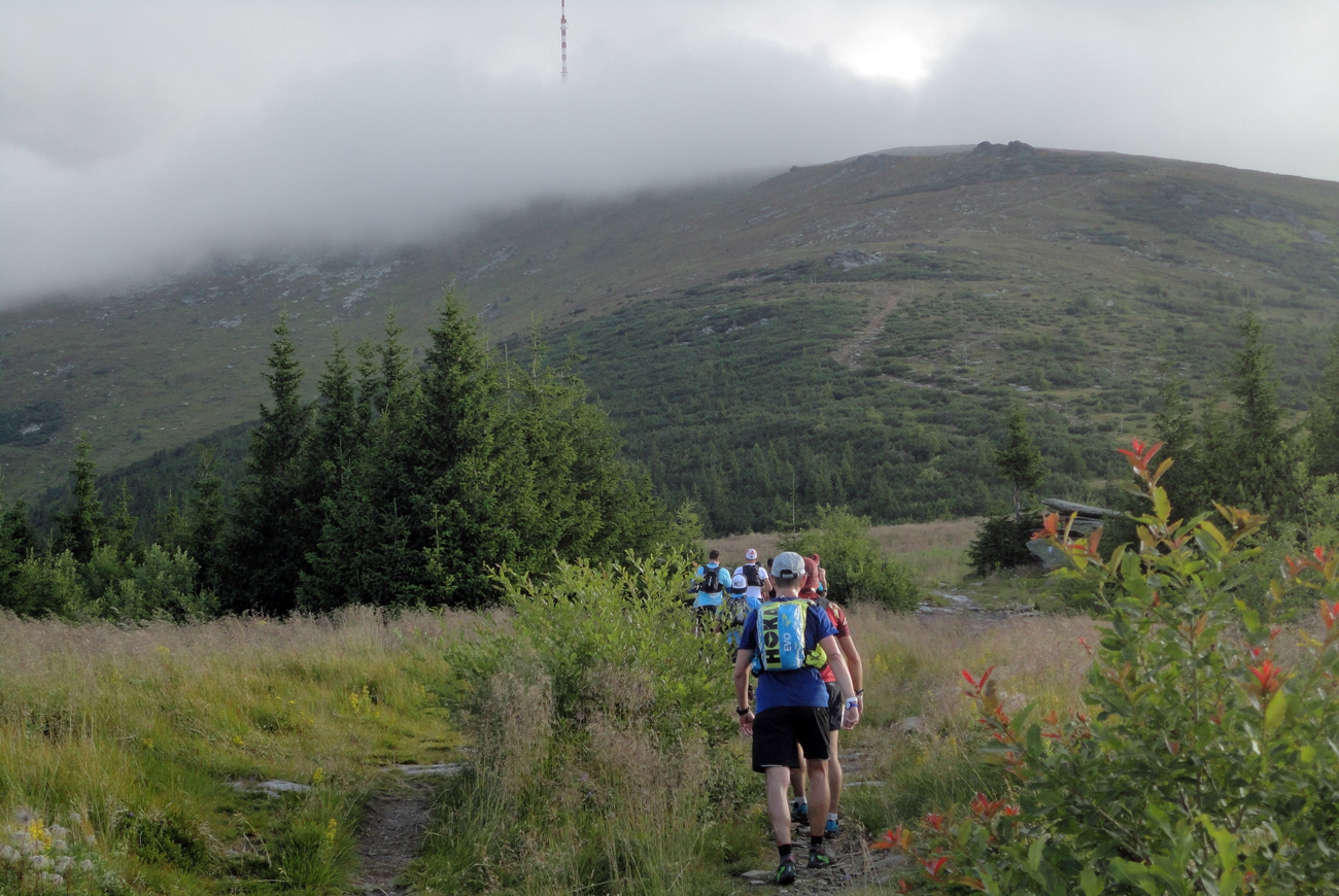 Prvá preteková skúsenosť: všetci najlepší celý výstup kráčajú, nebežia! Ja turista musím pobehnúť, krokom s nimi proste nestíham. Nad lesom sa objavuje len vršok vysielača v mrakoch, valiacich sa od severu. Hore som minútu za prvými a tých už tam niet. Ani sa nedivím, je tam kosa, hmla, mrholí, severáčisko fúka. Až tu začínajú skutočné preteky, som si povedal, tak sa len nechám “očipovať“ a valím preč. Skuvíňajúci víchor nesie za mnou urazený výkrik: „A to nás ohrdneš a nič si nedáš???“ Odteraz viem, čo musí mať správny pretekár, aby dosiahol dobrý čas: schopnosť odolať nástrahám občerstvovačiek! Lenže zasoplený nos a zaslzené oči – no pozeraj kam stúpaš a bež... Ani nohy nejako nechcú pochopiť, že sa majú prepnúť do iného režimu. Najhoršie sa mi potáca cez suťové polia na Orlovej a Bartkovej.