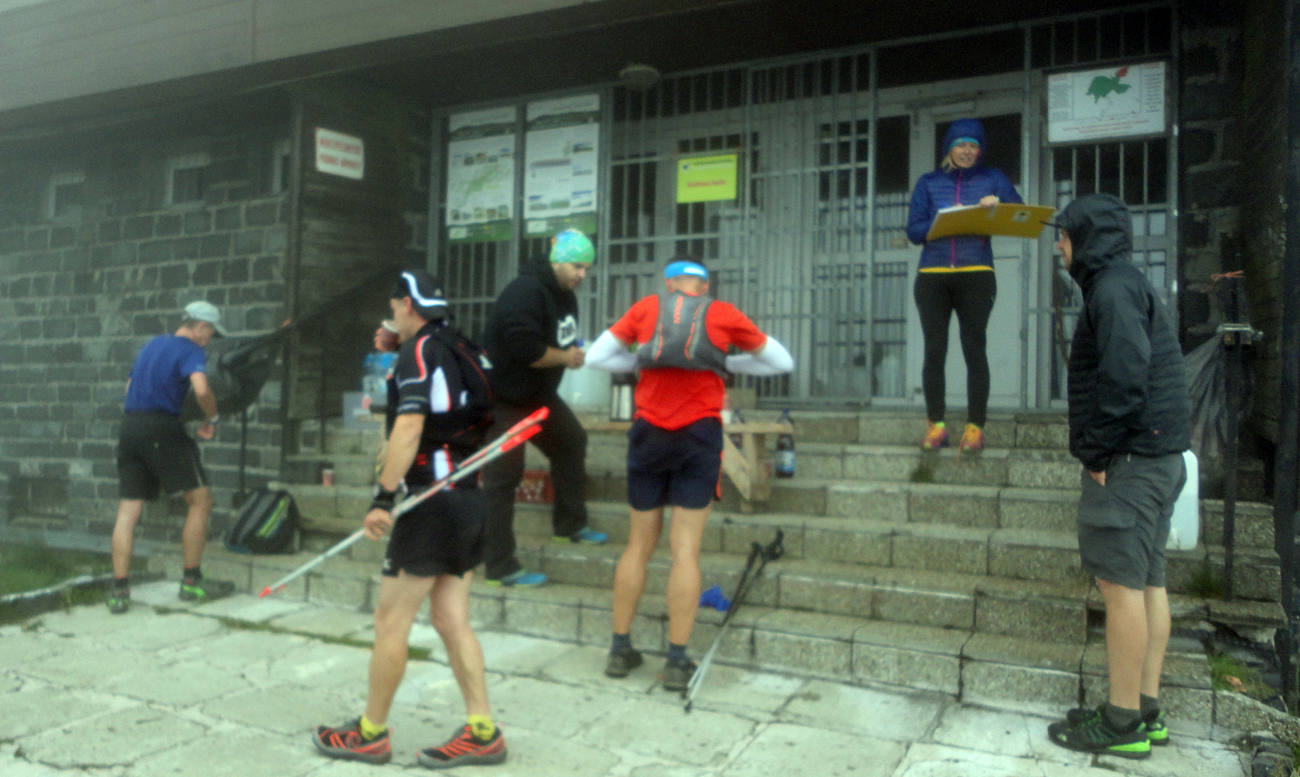 Od Sedla za Lenivou konečne po dlhom čase netreba čumieť pod nohy, tak zapínam forsáž a šprintom dole na Čertovicu. Aby som si aj tam spravil osobák – tak krátko som sa nikdy nezdržal, ani nie päť minút. Len doplniť fľaše, hrknúť si koly, pobrať chémiu z dropbagu na druhú časť trate a začína sranda menom „naklonená rovinka na Lajštroch“. S výškou pribúda aj sila vetra a zlovestná hustota mrakov. Prvý raz ma začína sprchovať tesne pred Štefáničkou – a to mám sakra šťastie, že už som tam, lebo do očí mi steká všetka soľ, čo som si od rána na čele a vo vlasoch nagazdoval. Ešte že ma chalani kontrolóri po čipovaní nasmerujú, už poloslepého, ku kohútiku s vodou :-) Asi si tam veľa ľudí v daždi a vetre a v takej kose nezvykne umývať hlavu v studenej vode pred chatou... Ale pomohlo. Dnu ani nejdem, Kamienka nie je ďaleko.