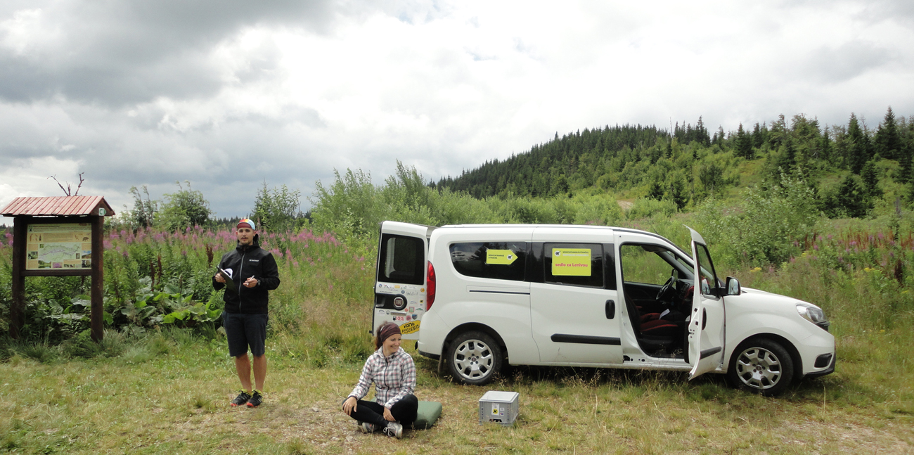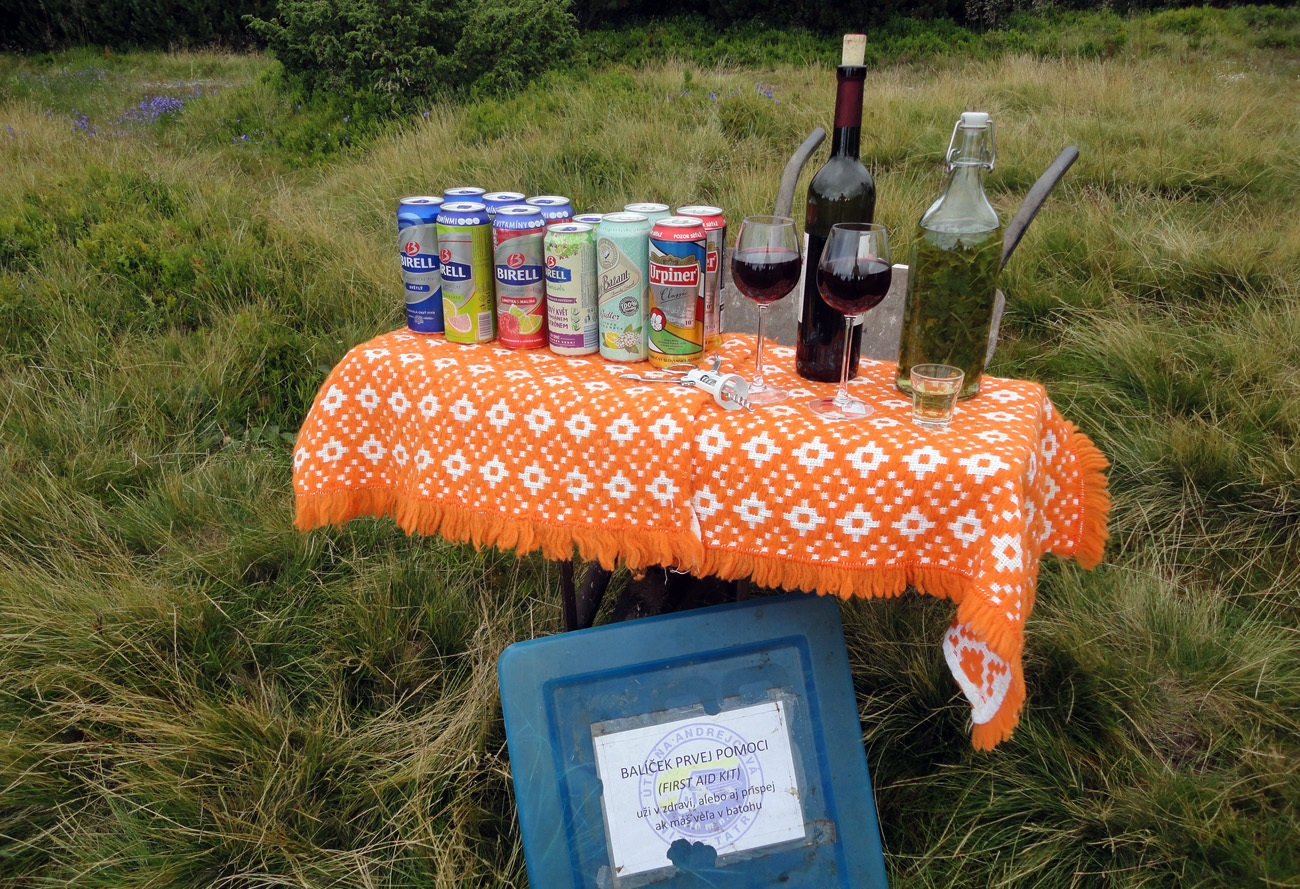 Preteková skúsenosť č.2: po tých nebehateľných chodníkoch sme sa doteraz s parťákom zväčša len „ponáhľali“, snaha o serióznejší beh je tu ale niekedy až nemožná. Furt sa to krúti, stráca, furt pod nohami niečo zavadzia, furt treba brzdiť a pridávať... No hrôza. Asi aj preto je na Priehybe čelo pretekov len slabú štvrťhodinku pred mnou. Ešte predtým ale občerstvovačka bez kontroly na Andrejcovej, na tú nesmiem zabudnúť - musel som si ju aj odfotiť. Lebo tomu už sa hovorí totálna provokácia: