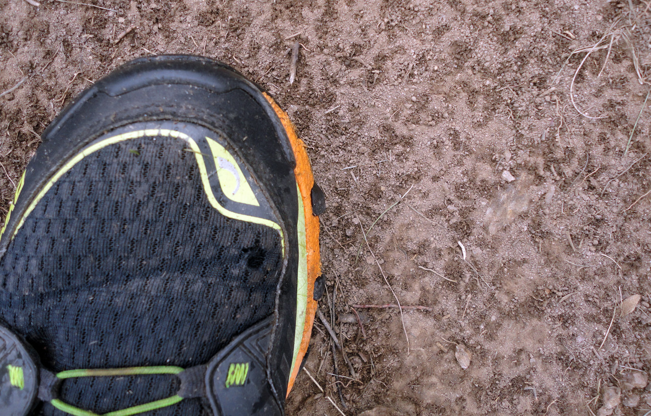 Až zbeh z holí do lesa prináša úľavu: oči už neslzia kvôli vetru a nohy konečne začínajú spolupracovať s hlavou. A valia ako besné. Zásluhu majú na tom ľudkovia z Andrejcovej, ktorí to tu parádne prečistili (aj nasledujúci zbeh z Vápenice do Priehyby – veľká vďaka!). A aj moje super boty – poskytujú na rozbitom strmom zbehu neskutočnú stabilitu a zároveň mäkkučký došľap cez výborne tlmenú pätu. V miernejších pasážach môžem dokonca aj cez špičku. Ich široká, stabilizujúca predná časť ukázala svoju nevýhodu až ďalej, v podstate na veľkej časti trasy až po Čertovicu. Za to ale nemôžu topánky, ale neviditeľný chodník v tráve niekedy vyše človeka. Zakopol som asi 100x – ale nie špičkou, lež práve bokom širokej prednej časti – o neviditeľné zákernosti, trčiace z bokov úzkeho chodníka. Raz som aj ľahol, našťastie len do trávy, ako do periny. To sa mi teda už dlho nestalo.