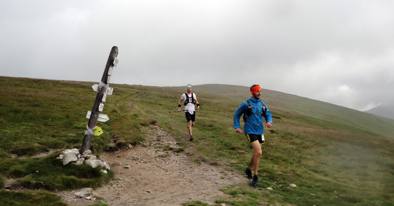 A o minútu ako keby ma hadicou ostriekali – nárazy vetra vrcholia, od severu sa sunie sivá stena, vodorovný dážď ma sprava masíruje, na pravé oko nič nevidím a keď otvorím ústa, mám ľavé líce hneď naduté ako škrečok... Až do Sedla pod Skalkou. Pekná, otvorená, hôľna krajinka, ideálna na takéto radovánky. Miestami mi začína byť aj trochu zima, ale prichádza preteková skúsenosť č.3: ten mrazivý dážď pôsobí na boľavé nohy ako obstrek na skopnutého futbalistu. Nohy zrazu nebolia a teda bežím rýchlejšie! A za Skalkou aj slnko klesá z mrakov a ja viem, že dnešný cieľ (prísť do cieľa prvý raz bez čelovky) splním.