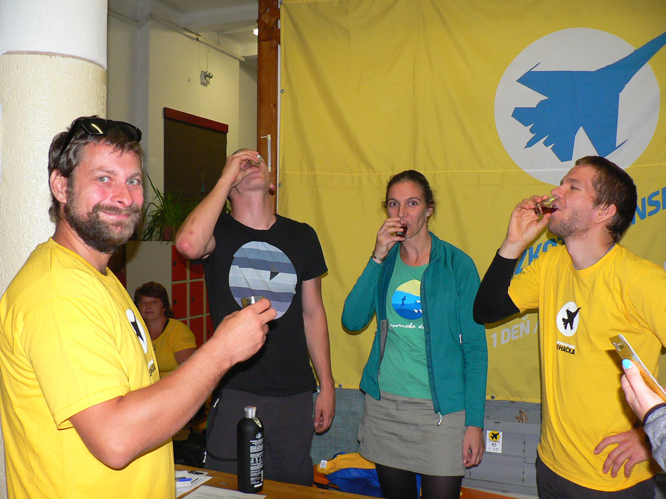Ale vážne: tradícia (od roku 2009) úspešne pokračuje, už druhý raz v revolučne zmenenej podobe, lebo štartujú nie dvojice, ale jednice. Tak sa ich niečo vyše sto pozliezalo v piatok večer do školy na prezentáciu. Zase sa črtala komorná akcia a nenaplnený limit 150 kusov na štarte. Lebo dosť ľudí sa odhlásilo a v sobotu ráno napokon vzlietlo 107 stíhačiek, z toho deväť so ženskou posádkou (tie doleteli všetky). Výhoda pre pomalších: žiadne šprinty po Čertovicu. Všetci, ktorí chceli, mohli ísť ďalej. Lebo nejaké „déenefká“ sa samozrejme cestou predpokladali. Nakoniec ich bolo aj celkom dosť, 26. Najviac na Čertovici. Furt to hovorím, že tam sa netreba dlho zdržiavať, lebo si človek pri takej hostine chytro rozmyslí, či ísť proti noci a tomu strmému svahu.