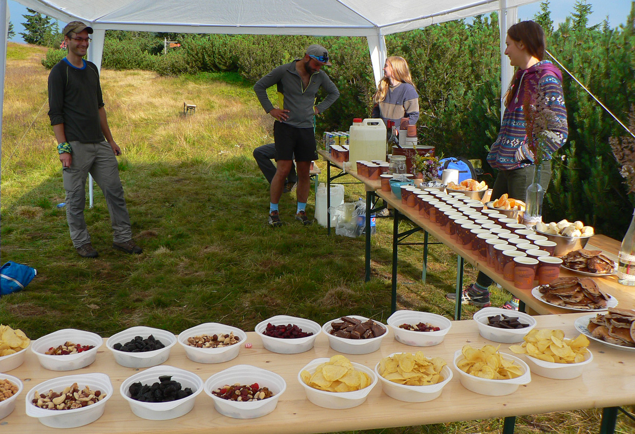 Jeden príklad za všetky, ako sa preteká: to na Andrejcovej nebola občerstvovačka, ale provokovačka. Švédske stoly v Hiltone bledli hanbou. Beží okolo triatlonová hviezda a legenda Petr Vabroušek a tí naňho kričia: Hybaj sééém, poď si dáááť! Odpoveď (To snad nemusím, že jo?) odnáša vietor a za šprintujúcim chlapom sa len zavrie kosodrevina... Kto ale neodolal vábeniu sirén, stal sa obeťou lukulských hodov a pribral tam aspoň kilo. A to pritom nie je oficiálny krmelec!