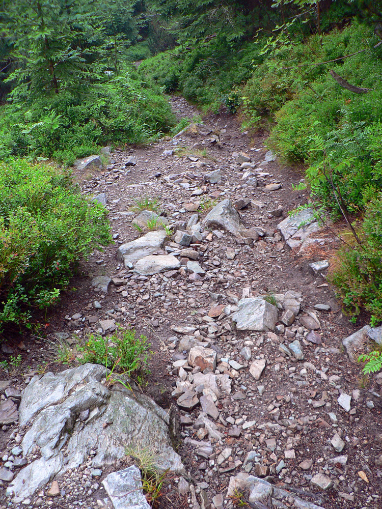 Takže poriadne šprinty už v prvej časti – prestávam chápať, ako tí najrýchlejší dokážu vyberať zákruty v pasážach, kde sa dá bežať, a bežať v tých džungliach, kde sa nedá bežať. Lebo chodníky medzi Andrejcovou a Čertovicou sú síce stále lepšie prepílené, ale aj tá burina je akosi každý rok vyššia a pod nohy akosi stále menej vidno. Sa mi zdá. Našťastie aspoň oprotiidúci turisti poslušne skákali šípky do krovia. Tí prví stíhači ich pekne vycvičili :-)