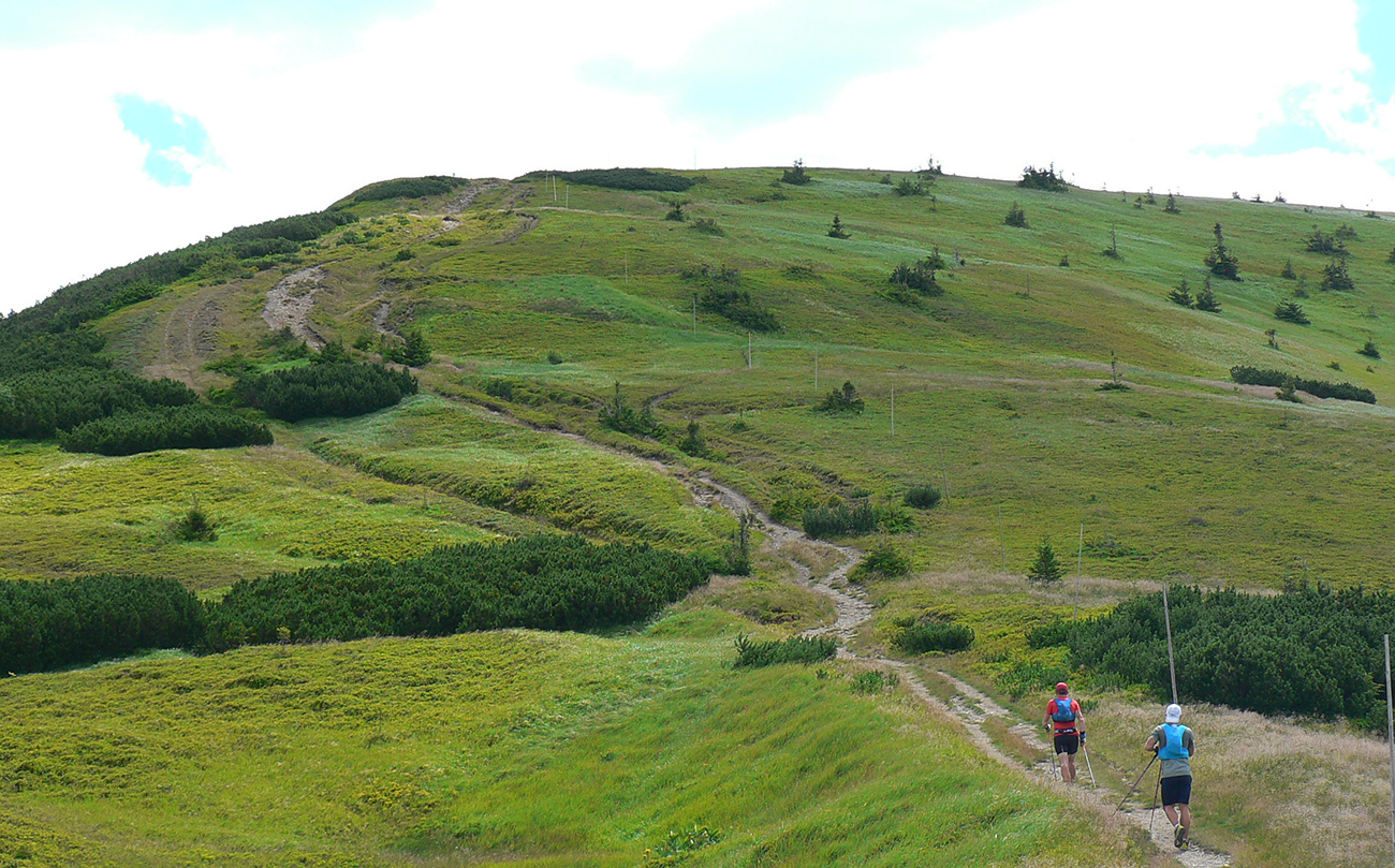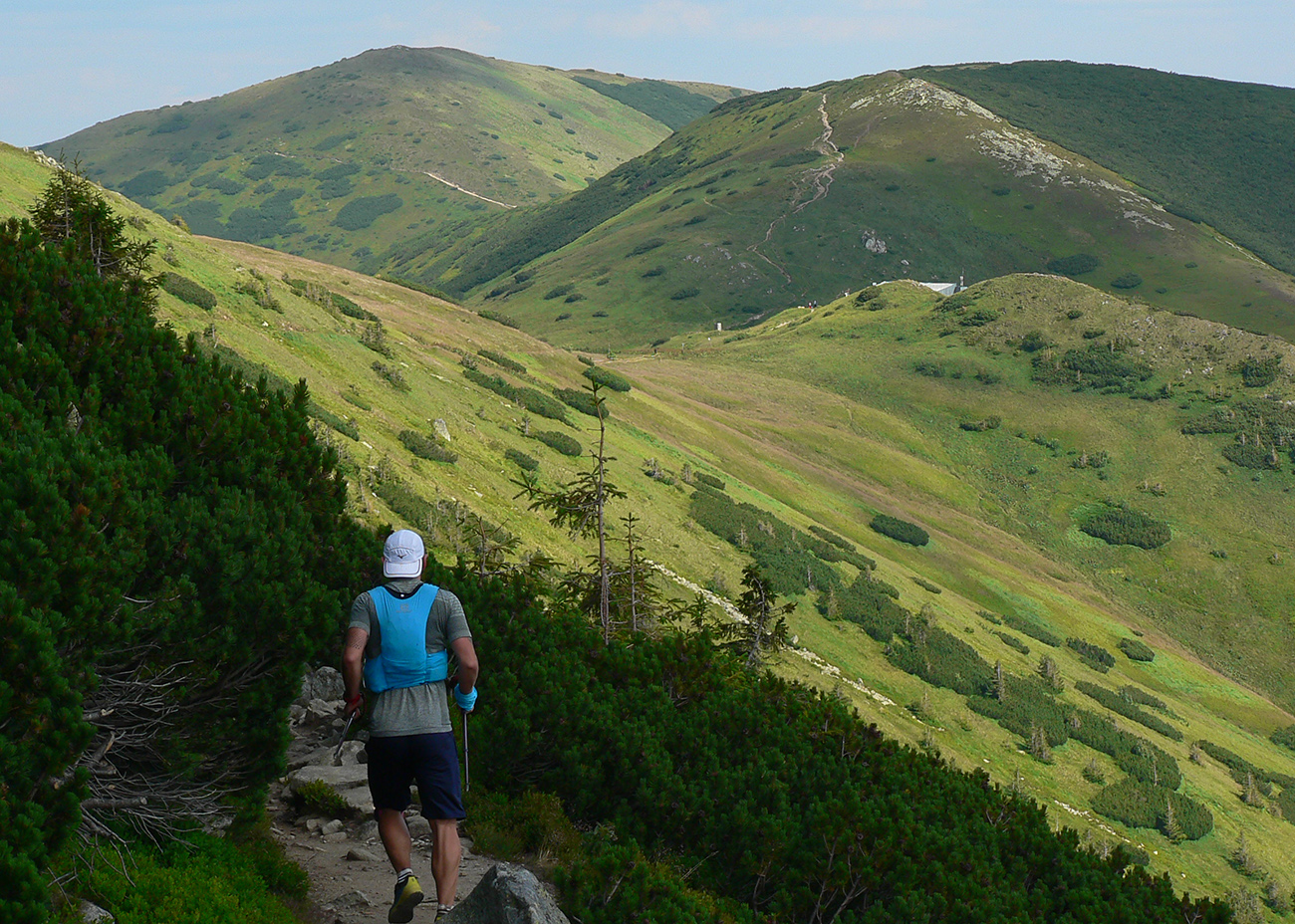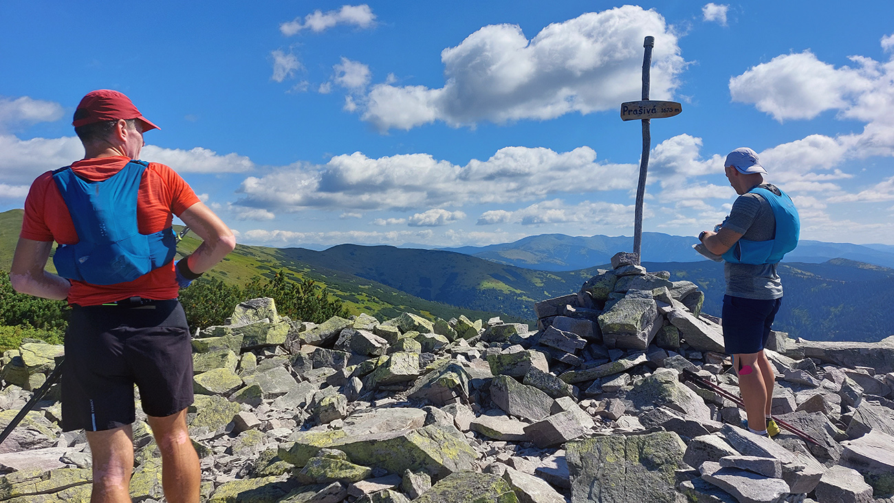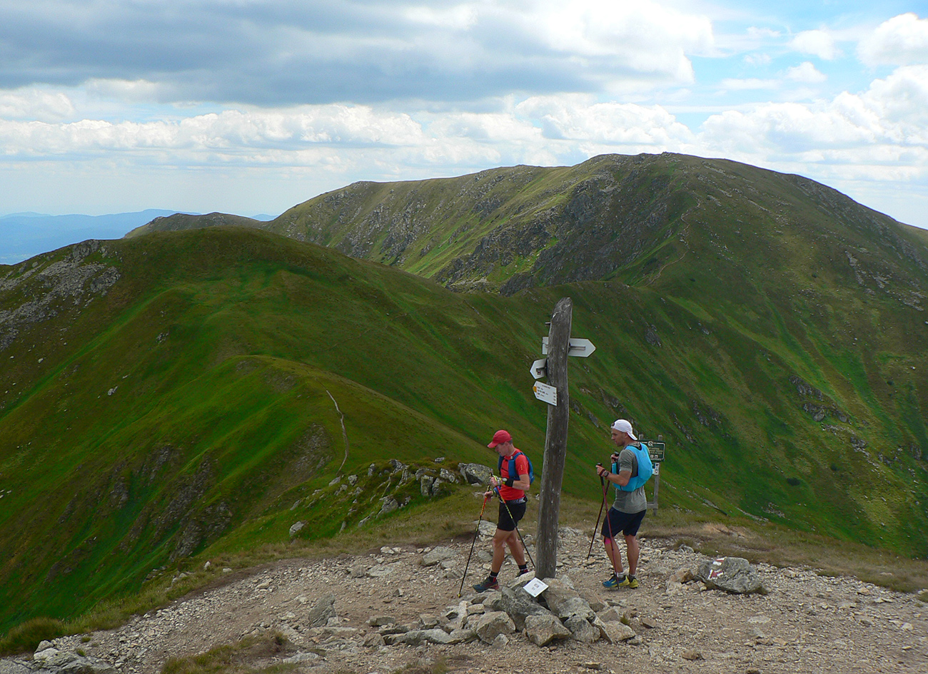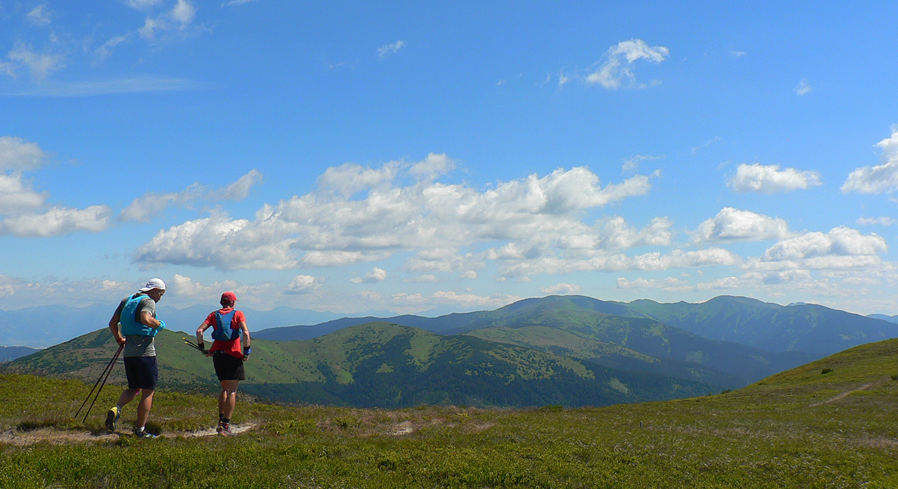 Trasu tu komentovať netreba, každý ju už pozná a viac povedia fotky. Ale aspoň k počasiu. Vyšlo priam dokonalo - aspoň nejaká útecha. Zrána slnečno, príjemne sviežo, žiadne júlové hice. Mraky postupne pribúdali, ale stále cez ne preblikával Oskar a kreslil do krajiny parádne kontrasty svetla a tieňov. Po nedávnom fronte aj vzduch čistý a výhľady ďaleké – od Sitna po Babiu horu a od Malej Fatry po Kráľovu hoľu. Proste tá pravá, hrebeňová kochačka. Aspoň sa chlapci nenudili pri čakaní. A vrcholom blaha bol celodenný vietor do chrbta.