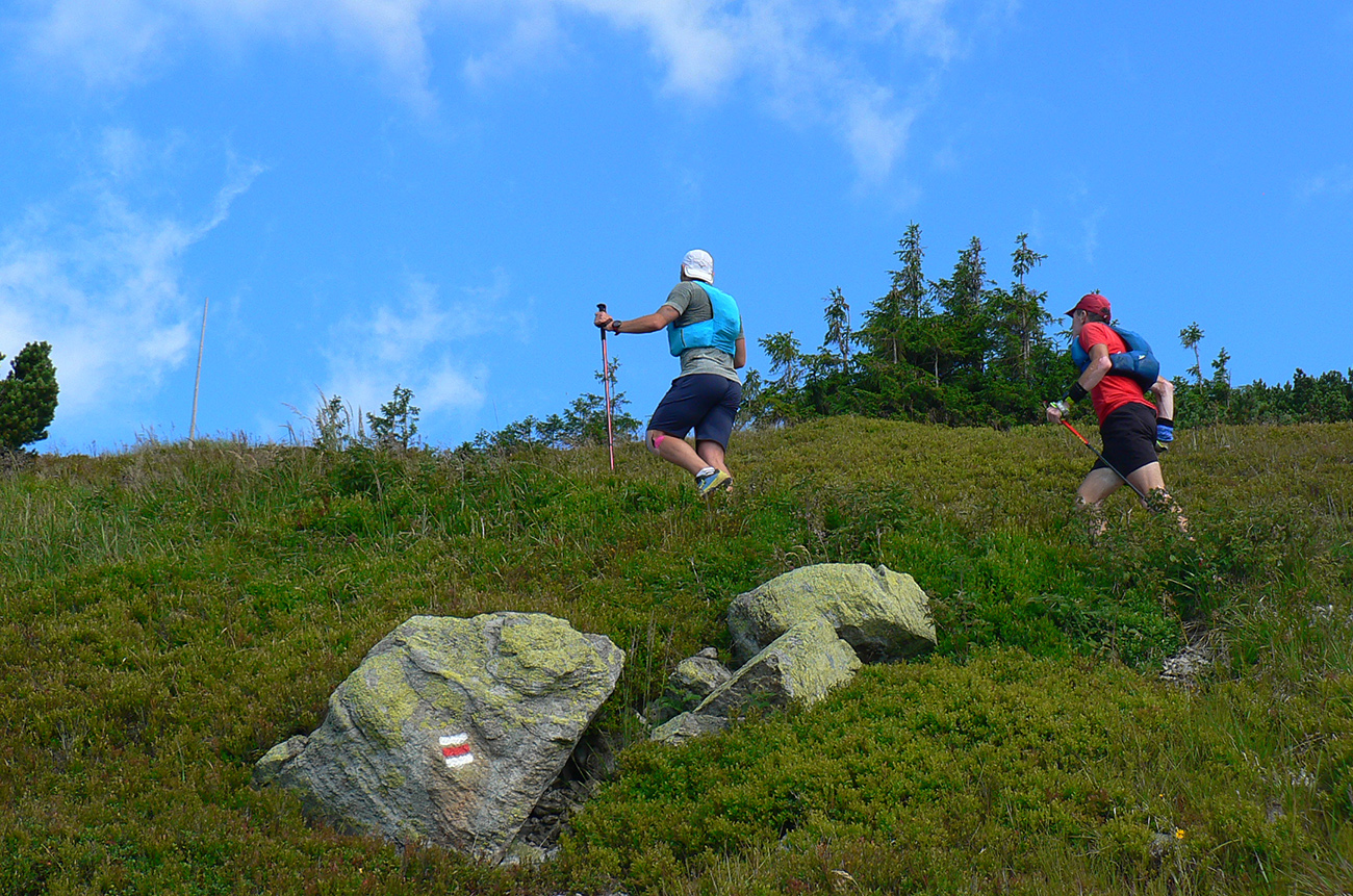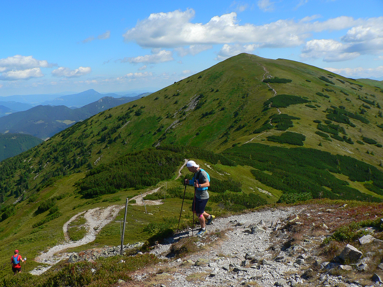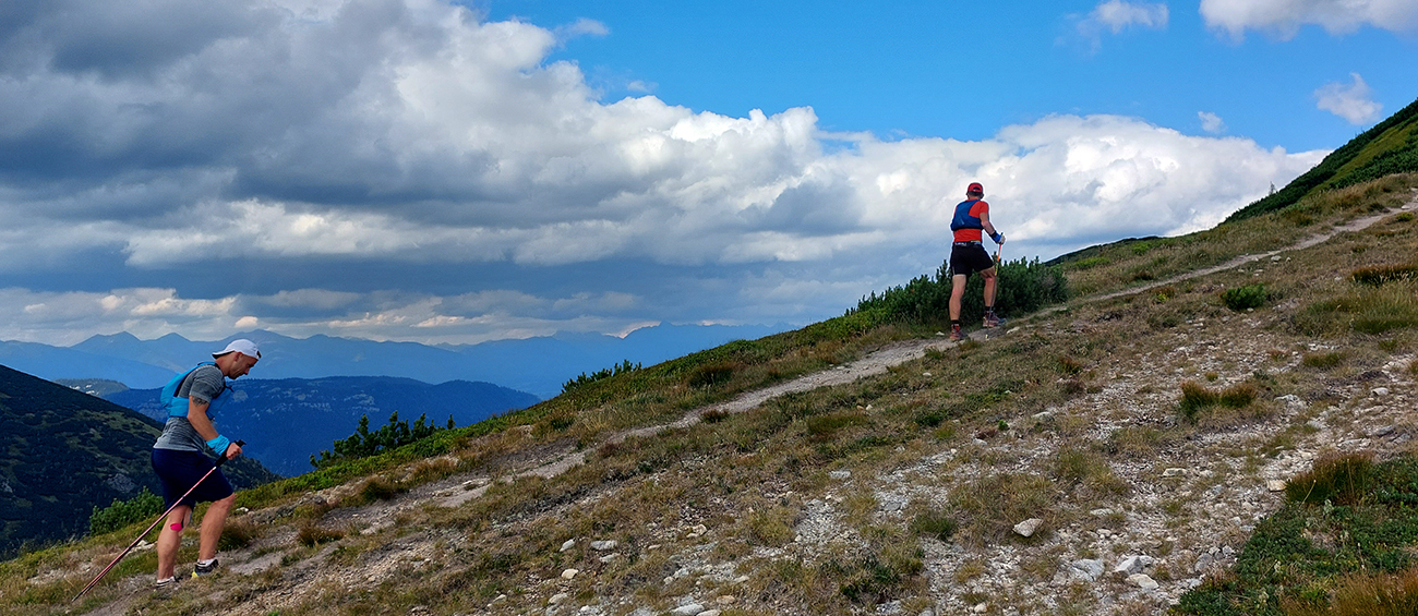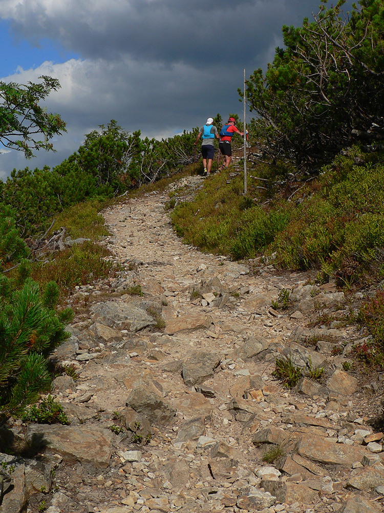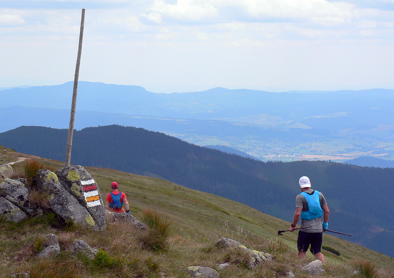 Trasu tu komentovať netreba, každý ju už pozná a viac povedia fotky. Ale aspoň k počasiu. Vyšlo priam dokonalo - aspoň nejaká útecha. Zrána slnečno, príjemne sviežo, žiadne júlové hice. Mraky postupne pribúdali, ale stále cez ne preblikával Oskar a kreslil do krajiny parádne kontrasty svetla a tieňov. Po nedávnom fronte aj vzduch čistý a výhľady ďaleké – od Sitna po Babiu horu a od Malej Fatry po Kráľovu hoľu. Proste tá pravá, hrebeňová kochačka. Aspoň sa chlapci nenudili pri čakaní. A vrcholom blaha bol celodenný vietor do chrbta.