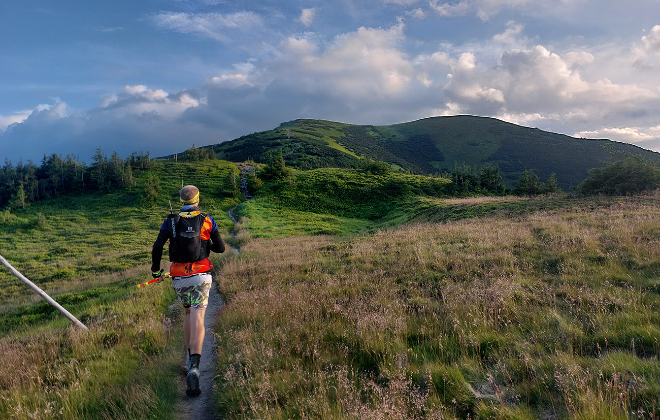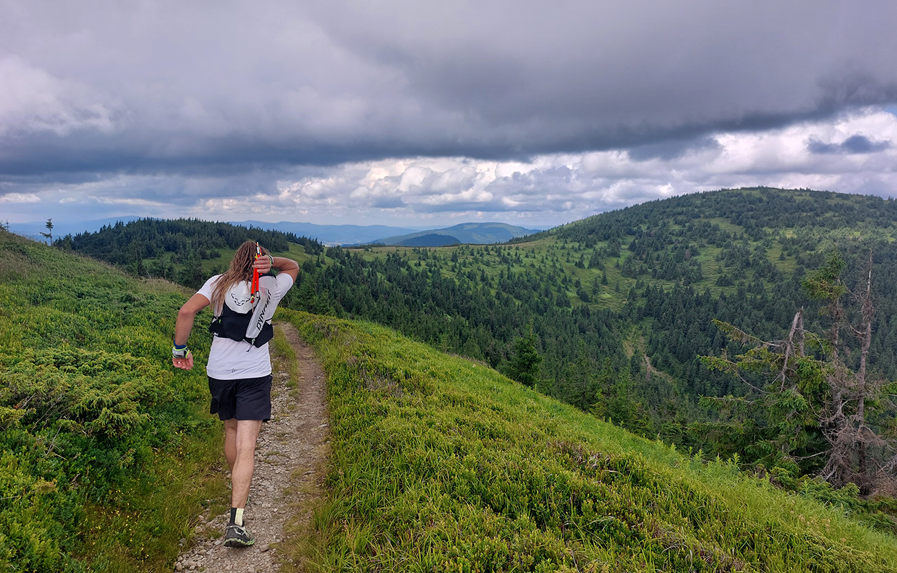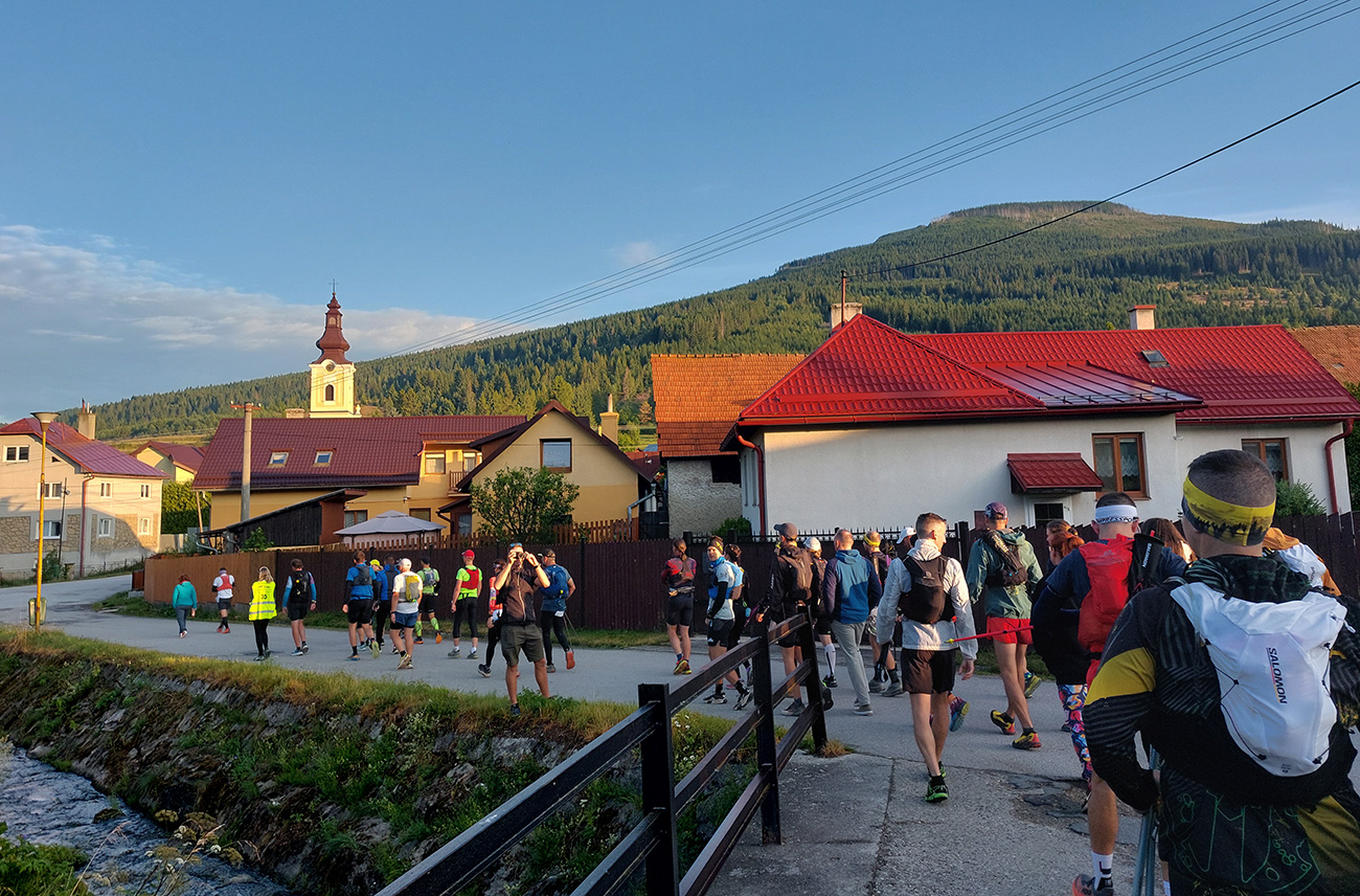 Milovaný zostup z Prašivej: najskôr slalom šotolinovým morom, potom bobový tobogán s polmetrovými skokmi. Ale žiadna krv na skalách, čo tadeto všetci bežali pod svoje možnosti? Na chvíľu aj narovnaný traverz na predýchanie a v lese za ním zas poriadne strmo a už aj pološero, na dorazenie. Ale v relatívnom (fyzickom) zdraví som sa skotúľal na poslednú kontrolu s dvoma myšlienkami (viac už hlava neudrží, som si myslel): dotankovať colu a vybrať si z batoha čelovku. Cola vo fľaši, odchádzam, za mnou letí otázka: „A nebudeš v tom lese už potrebovať čelovku?“.