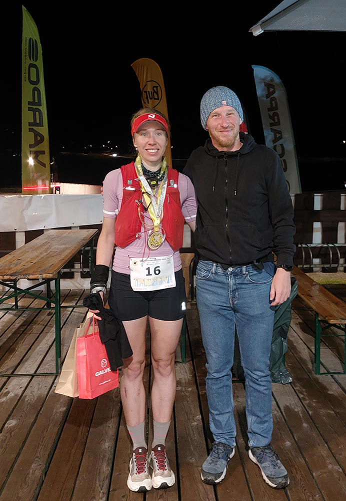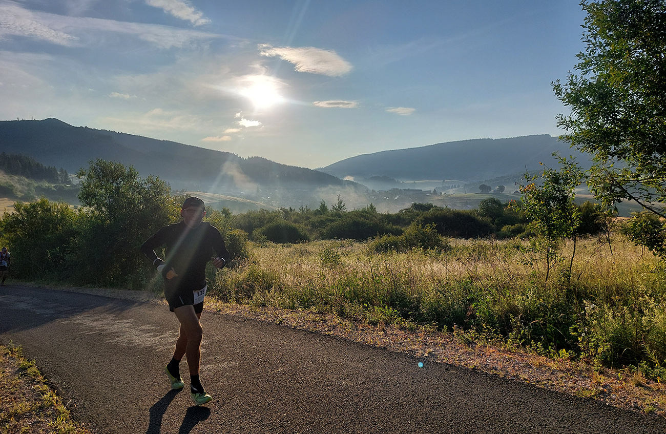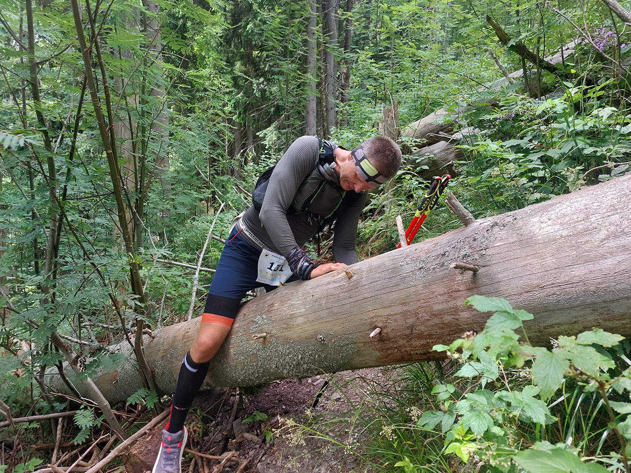 Milovaný zostup z Prašivej: najskôr slalom šotolinovým morom, potom bobový tobogán s polmetrovými skokmi. Ale žiadna krv na skalách, čo tadeto všetci bežali pod svoje možnosti? Na chvíľu aj narovnaný traverz na predýchanie a v lese za ním zas poriadne strmo a už aj pološero, na dorazenie. Ale v relatívnom (fyzickom) zdraví som sa skotúľal na poslednú kontrolu s dvoma myšlienkami (viac už hlava neudrží, som si myslel): dotankovať colu a vybrať si z batoha čelovku. Cola vo fľaši, odchádzam, za mnou letí otázka: „A nebudeš v tom lese už potrebovať čelovku?“.