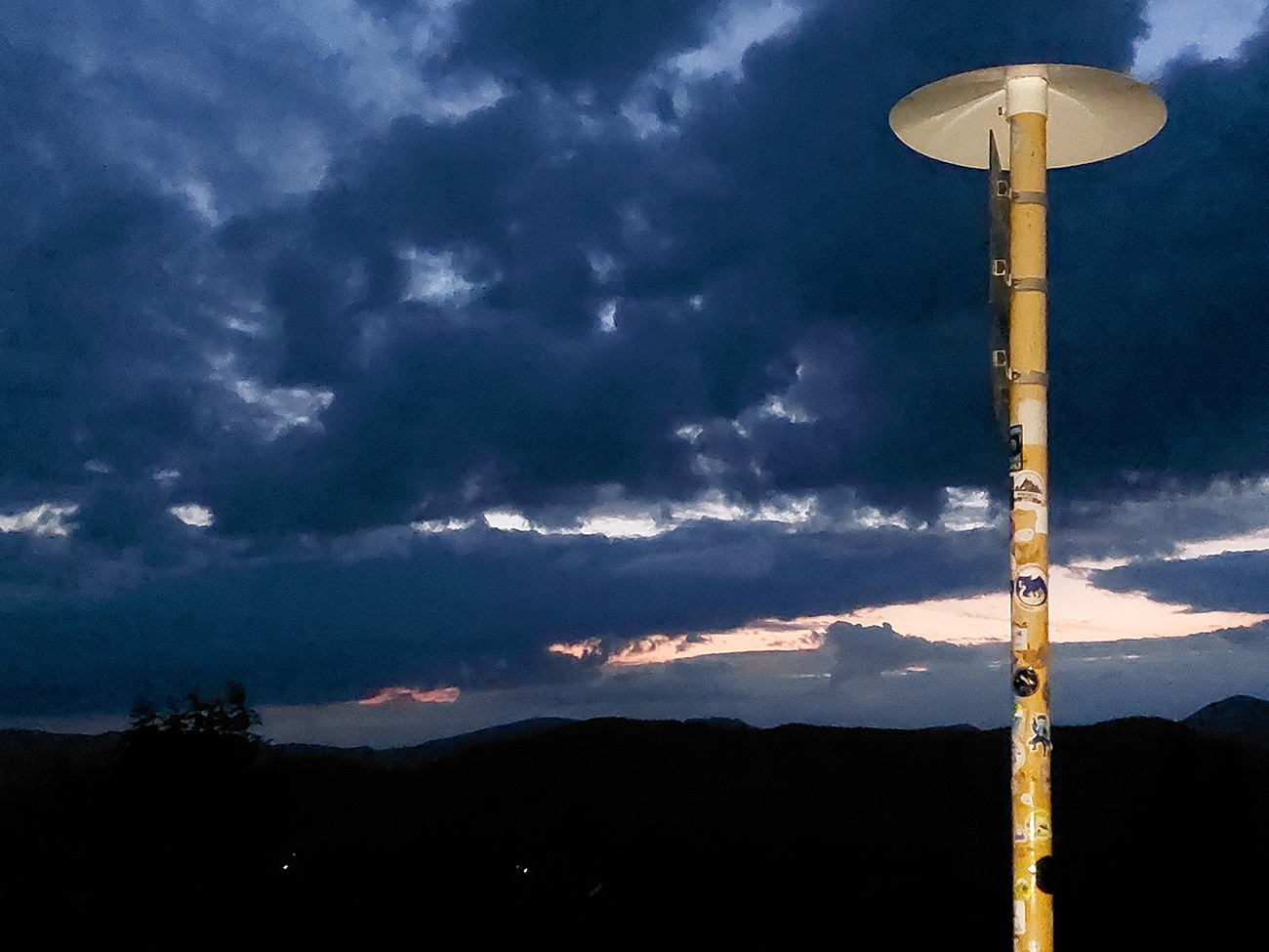 Máme tu ďalšie skoro okrúhle jubileum – tínedžerka Stíhačka oslavuje 15 rokov, a keďže už teda „môže“, rozhodla sa, že nás všetkých poriadne posexuje. Je to proste nevybúrené decko rozvedených rodičov, o ktoré sa stará jej adoptívny otec Juraj T. – a ten zjavne jej výchovu moc nezvláda, lebo také počasie si na nás tá zákeráčka objednala, že viacerí prihlásení sa zľakli a radšej neprišli. No ale zas – zažili sme aj horšie, ako hlásila terajšia predpoveď. To je to riziko letného pohybu po chrbte Nízkych Tatier, že? V piatok v Telgárte sa ale Stíhačka tvárila podozrivo nevinne, ako to len tínedžerky vedia – aj v tričku sa dalo vonku pred školou postáť, ani nesnežilo. Do školy sa síce vstupovalo zboku (hlavný vchod zamaskovaný banerom) a Spišskú na mieste dezinfekcie nahradil nejaký Borec (lebo Belo sa flákal ktovie kde), inak všetko bolo, ako má byť. Aj bezkontaktné záchody. Na kontrolu výbavy dohliadal prísny bocian, pri druhom stole sa fasovali buffky, tašky a papierové štítky, pri treťom tá dezinfekcia (nechcel skoro nik, len zadný voj tam bol furt). Na obzore žiadna avizovaná meteorologická katastrofa, pokojný večer na vŕšky padal...