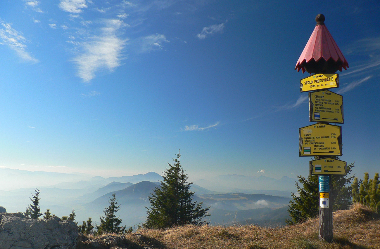 Dostal som sa do Tatier túto jeseň až neskoro a po uzávere chodníkov, aj to „len“ do tých západných, ale neva. Pekná sobota začiatkom novembra, to sa oplatilo vybehnúť poobdivovať panorámy hrebeňa z Babiek. Síce trochu okľukami, hore aj dole, ale o to išlo, pozrieť aj tam, kde som ešte nebol. Rozklus mrazivo inverzným ránom zo stanice v LM cez Trstené a Bobrovec mal tú výhodu, že som usporil za autobus aj za raňajky :-))) Napásol som sa fajných jabĺčok popri ceste. A bola to taká kultúrno-historická turistika na zahriatie: v Trstenom stojí jeden z najstarších kostolov na Liptove (z polovice 13. storočia), v Bobrovci na námestí pekná drevená zvonica a kostol majú tiež poriadne starý. Z dediny na Bobroveckú Vápenicu okľukou, lebo som chcel vidieť Poľovníkov vodopád. No pekný je, len to jeho okolie postapokalyptické...