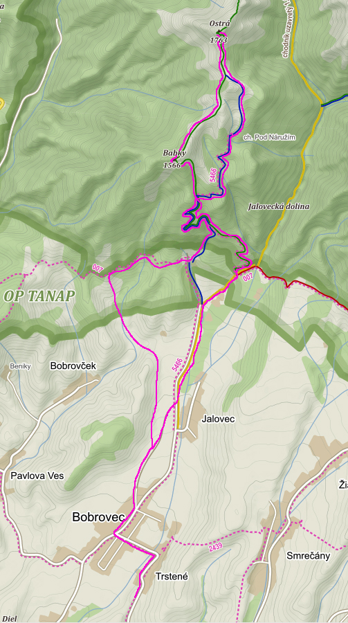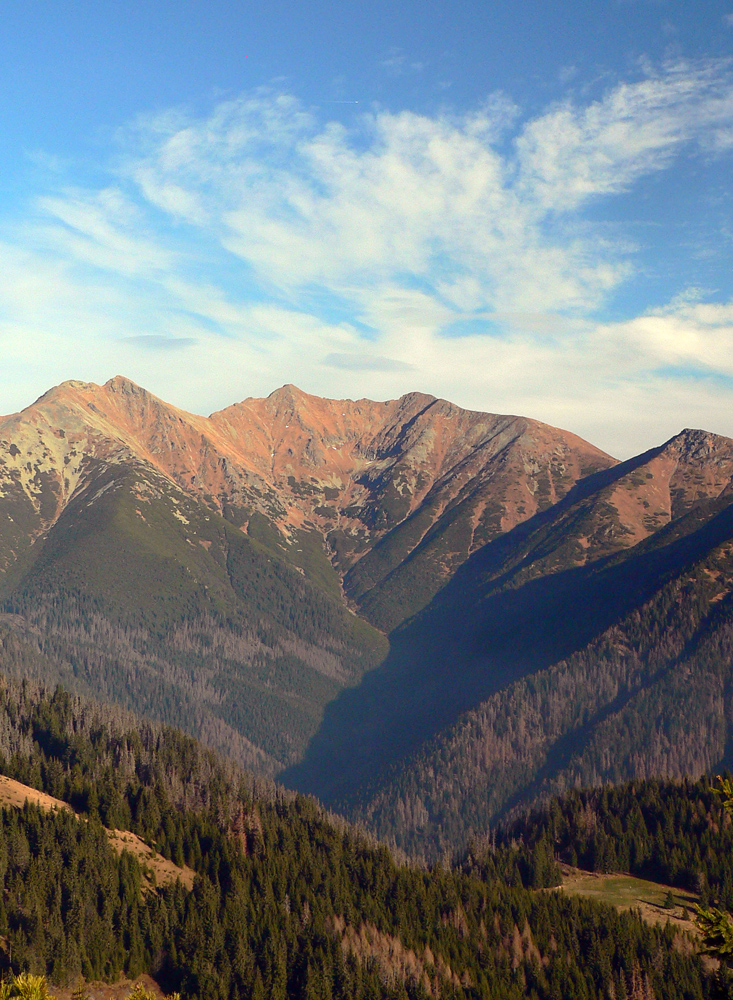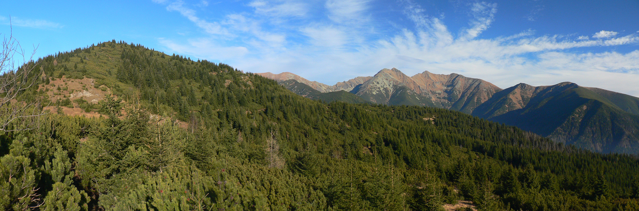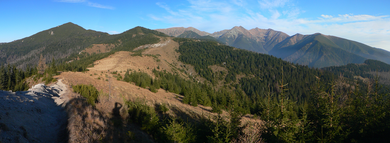 No a potom klasika - okruh modrá/zelená, cez chatu pod Náružím a sedlo Predúvratie na Ostrú, tam sa ešte smie. Poobdivovať panorámy hrebeňa zubatého, roháčskeho. Aj Sivý vrch zapózoval. Nazad na Babky v hnusnom protislnku síce, ale peknou krajinou okolo Malej a Veľkej Kopy. A prudko dole po zelenej, až do Jaloveckej doliny. Na záver len asfalt a poľná cesta, na ktorej som pred Bobrovcom uzatvoril okruh.