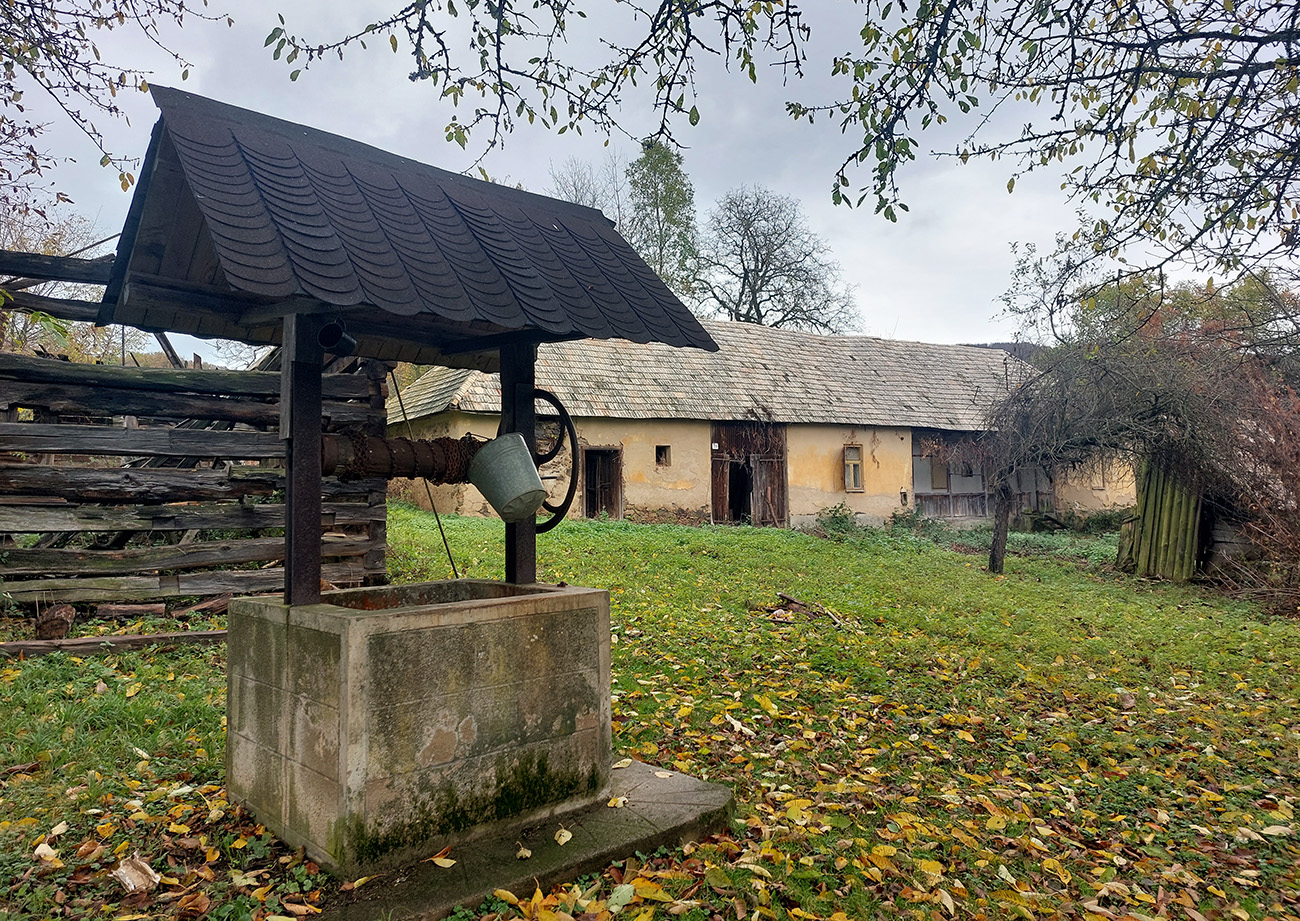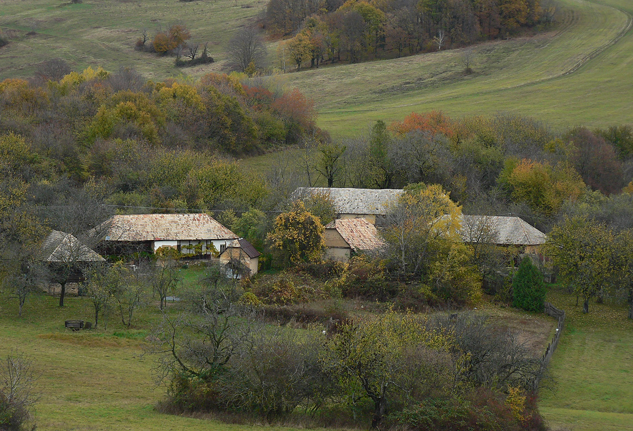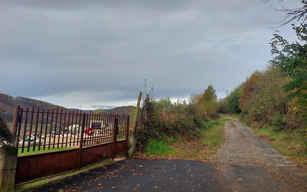 Potom o malú chvíľku to už začalo: vynorenie z lesa na rozľahlé pasienky a panoramatická cesta okolo osady Horné Fafáky. Aj dosť veľký cintorín tam majú, kedysi tam na okolí dosť ľudí muselo bývať (samý Melicherčík). Tých domkov sa aj ďalej od samotnej osady krčí viac. Teraz všetko pozatvárané, ale vidno, že obhospodárené, tráva vypasená „na ježka“ a samé upozornenia na kamerový dozor. A v sade pri osade aj jedlé gaštany. Nové modré značky tam pekne svietia, nedajú blúdiť, len šípku na cestu hore lúkou asi vyrobili v miestnom dialekte :-) Alebo je to len prejav kvality nášho školstva: