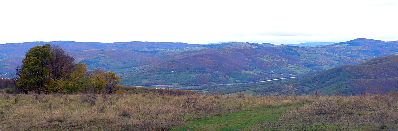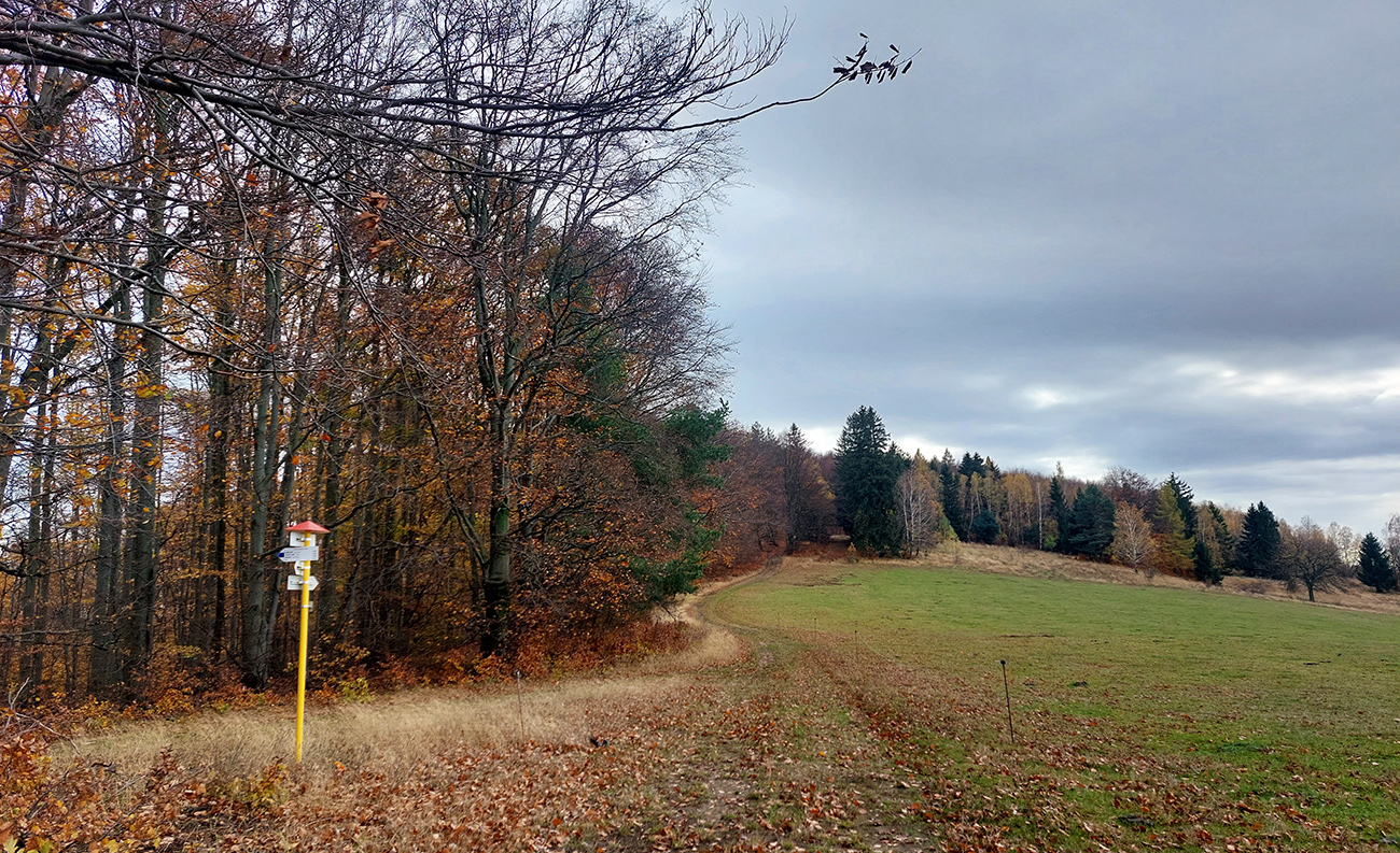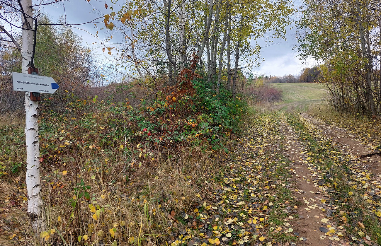 To už som kluskal (žeby nuda nebola, aj že už som musel, vlak nepočká) po cyklotrase cez Rubiská, cesta je aj chotárnou hranicou Detvianskej Huty a Látok. Na križovatke Vrchdobroč – city som sa posledný raz prilepil, tentokrát v protismere, ku trase H100 - a Poľana predo mnou pózovala zo všetkých síl, až kým som znovu nezatočil na západ a nevliezol do lesa pred Košútkou.