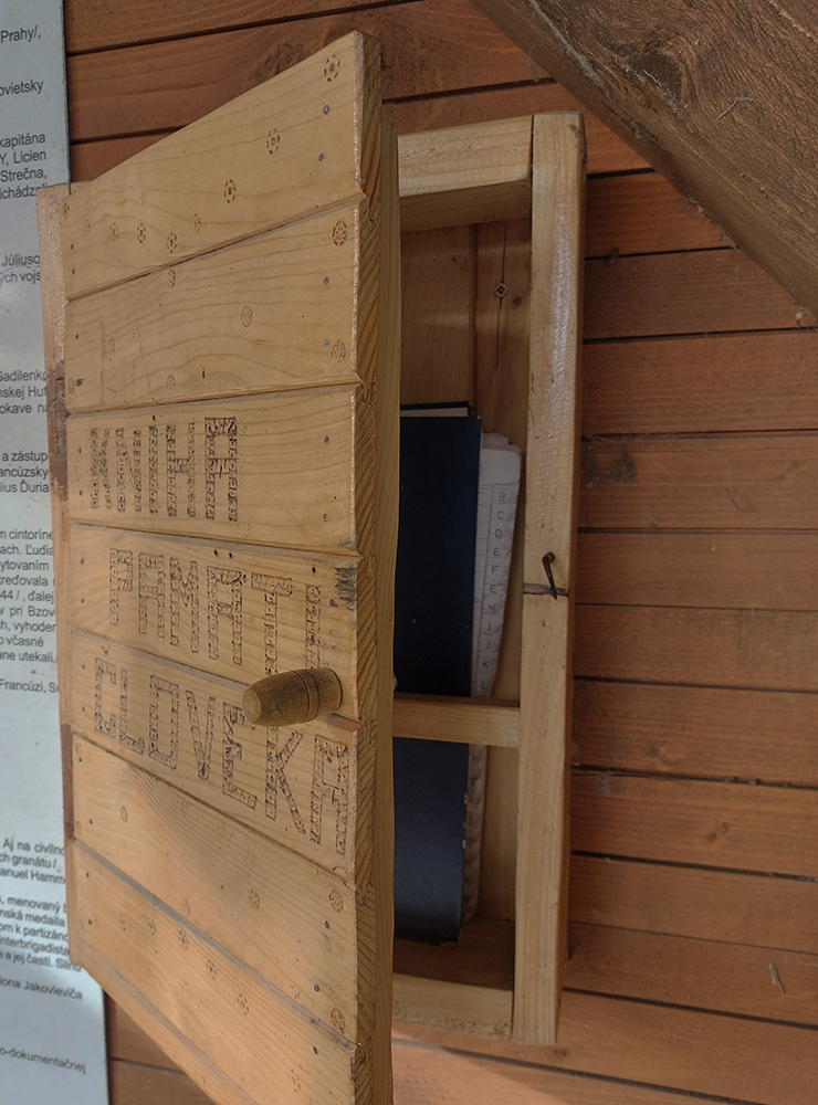 Až do osady Hrnčiarky vedie potom cesta striedavo lesmi a lúkami so samotami: pekný, farebný, typický lazový kraj. Vľavo dolina s Kotmanovou a Dobročou, kade vedie rozhranie medzi Stolickými vrchmi (ktoré pomaly opustím) a severnejšie položenými Veporskými. Hrnčiarky sú presne na ich hranici a turisti z Cinobane sa asi starajú, lebo v autobusovej zastávke parádna mapa aj „vrcholová kniha“. Hneď vedľa dobre udržovaný pamätník osloboditeľom, z ktorých sa žiaľ medzičasom stali okupanti.