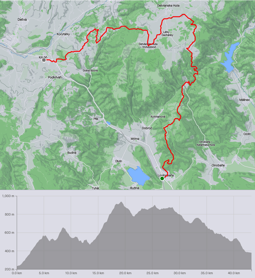 Podpoľanie (v zmysle tej klasickej lesno-lúčnej krajiny s rozhádzanými samotami) je priestorovo široký pojem, takže sa sem ráta aj táto prechádzka najzápadnejšími výbežkami Stolických a Veporských vrchov, z Lovinobane cez Hrnčiarky, Táňovo, Smolno, okraj Detvianskej Huty, cez Vrchdobroč a ponad vleky na Košútke dole do Kriváňa. Klasicky od vlaku po vlak - dúfal som, že bez meškania. Asi 40 km som narátal na mape, COROSy ukázali ešte trochu viac. Pod nohami samé pevné chotárne cesty, čo mi po dažďoch vôôôôbec nevadilo, aspoň sa dalo lepšie sústrediť na výhľady. A tie sú tu široké a ďaleké. Čiže asi takto to vyzeralo: