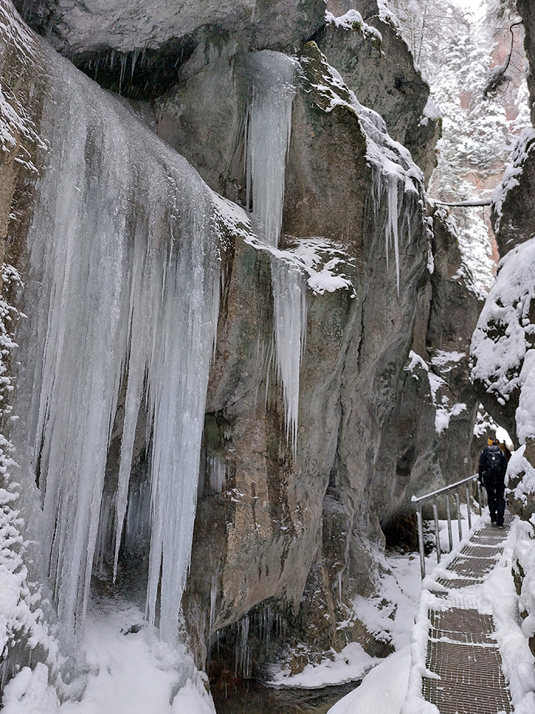 Úvod nič moc, z centra Terchovej do Bieleho Potoka popri ceste , lebo aj Terchová sa viac stará o to, aby autám a nie pešiakom sa dobre žilo, keď nasneží. Potom ale už Dolné diery a síce chodník prechodený, ale iba pár ľudí, navyše v našom smere. Vychutnávačka čerstvo obielených brál, poriadne dlhých cencúľov, hravého potoka a jeho ľadových doplnkov, no jedna paráda!