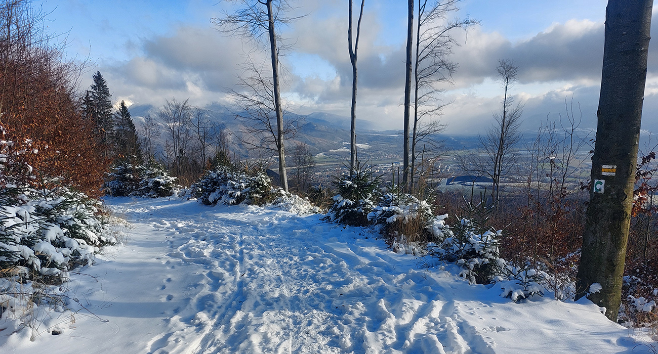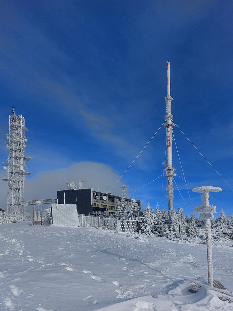 Taaakže: rýchly pohľad na radar a družicu – toto dlho nevydrží, treba ísť! Aspoň sa potešiť a zdokumentovať pre budúce generácie, aké záľahy snehu sme tu kedysi mali. Na lúkach nad mestom blatká trochu primrzli, tak sa chrumkavo stúpalo. Rampa ešte v letnom režime, čiže rampár žiadny, len značky, na ktoré každý kašľal ako vždy a autá chodili hore – dole, ako sa im zachcelo. Cesta síce široká, ale už pod snehom, tak bacha.