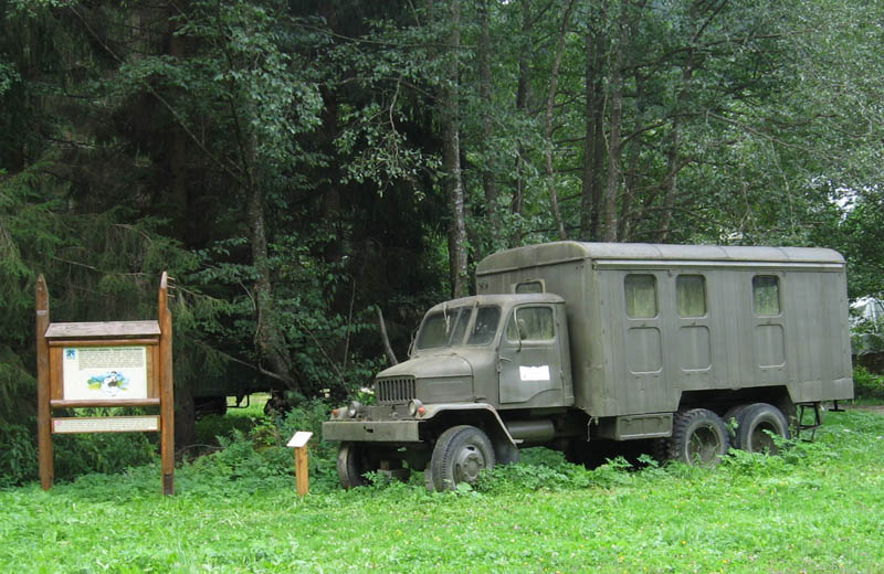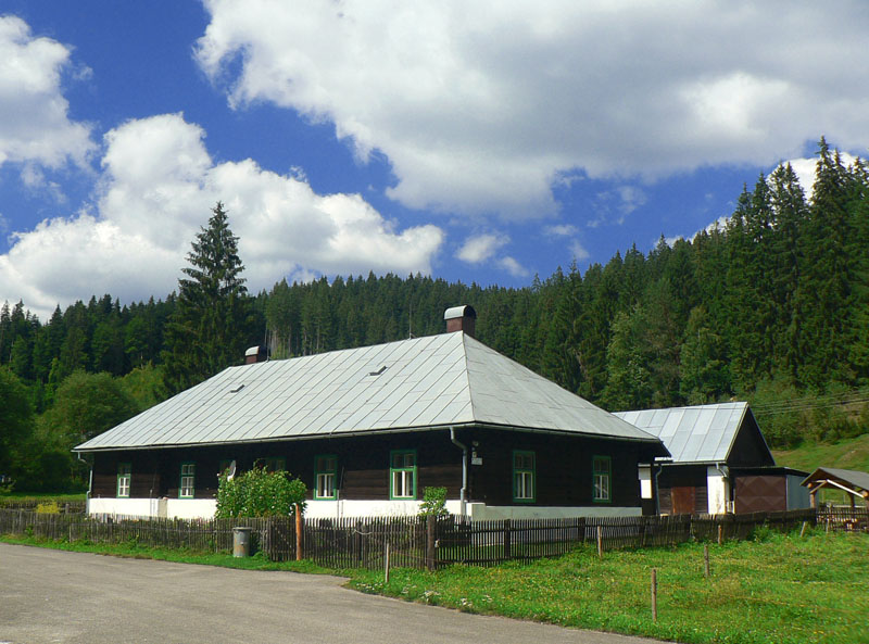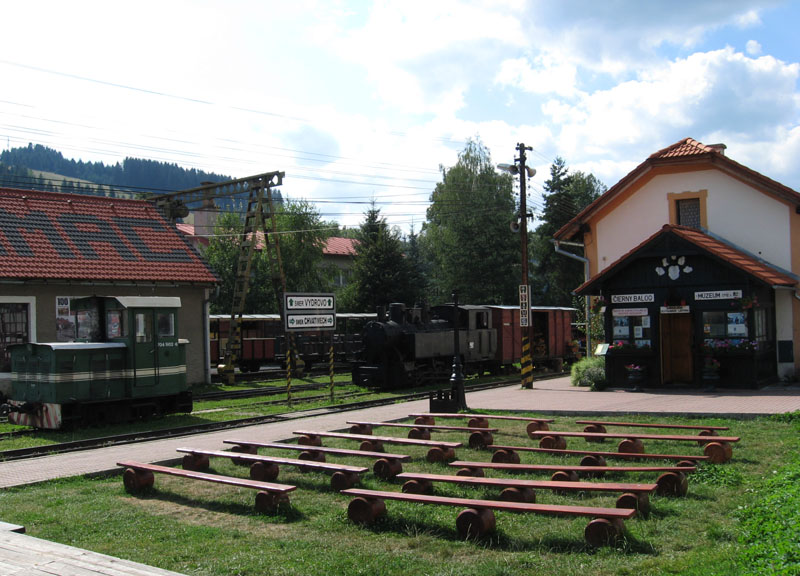 Vraciame sa ku smerovníku a po malom blúdení nachádzame cestu do doliny, ktorou vedie žltá značka. Prechádzame postupne popri niekoľkých lesníckych zruboch a senníkoch a asi po hodine príjemného, ale monotónneho pochodu v tieni lesa sa vynárame v ústí Obrubovanskej doliny pri parádnej horárni. To už šliapeme hodnú chvíľu po asfalte a k ďalšej horárni na hornom konci skanzenu to máme ešte skoro dva kilometre. Míňame jedno z bývalých nákladísk úzkokoľajky – dnes je tu stanový tábor pre deti a brigádnikov a koniec poslednej zachovanej vetvy železnice, ktorej sieť mala voľakedy až 132 kilometrov.