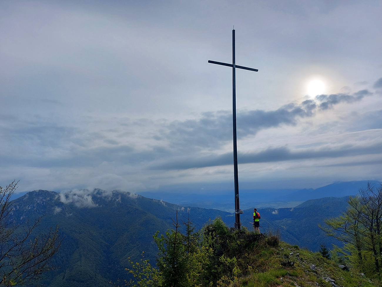 Hej hej, Rakytov je strmý a dlhý z juhu, ale popri vykecávaní to išlo nejako lepšie. Aj keď už sa začínalo častejšie „visieť na paliciach“. S hlavou dole. No aj najvyšší bod okruhu sme nejako dorazili, pokochali sa kruhovou panorámou, zasneženými Tatrami v diaľkach a dali sa na zostup.
