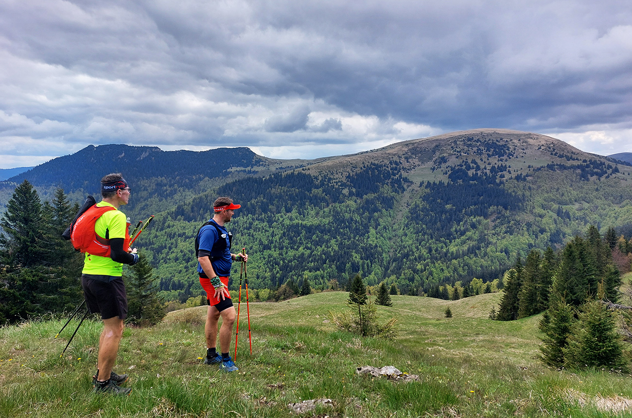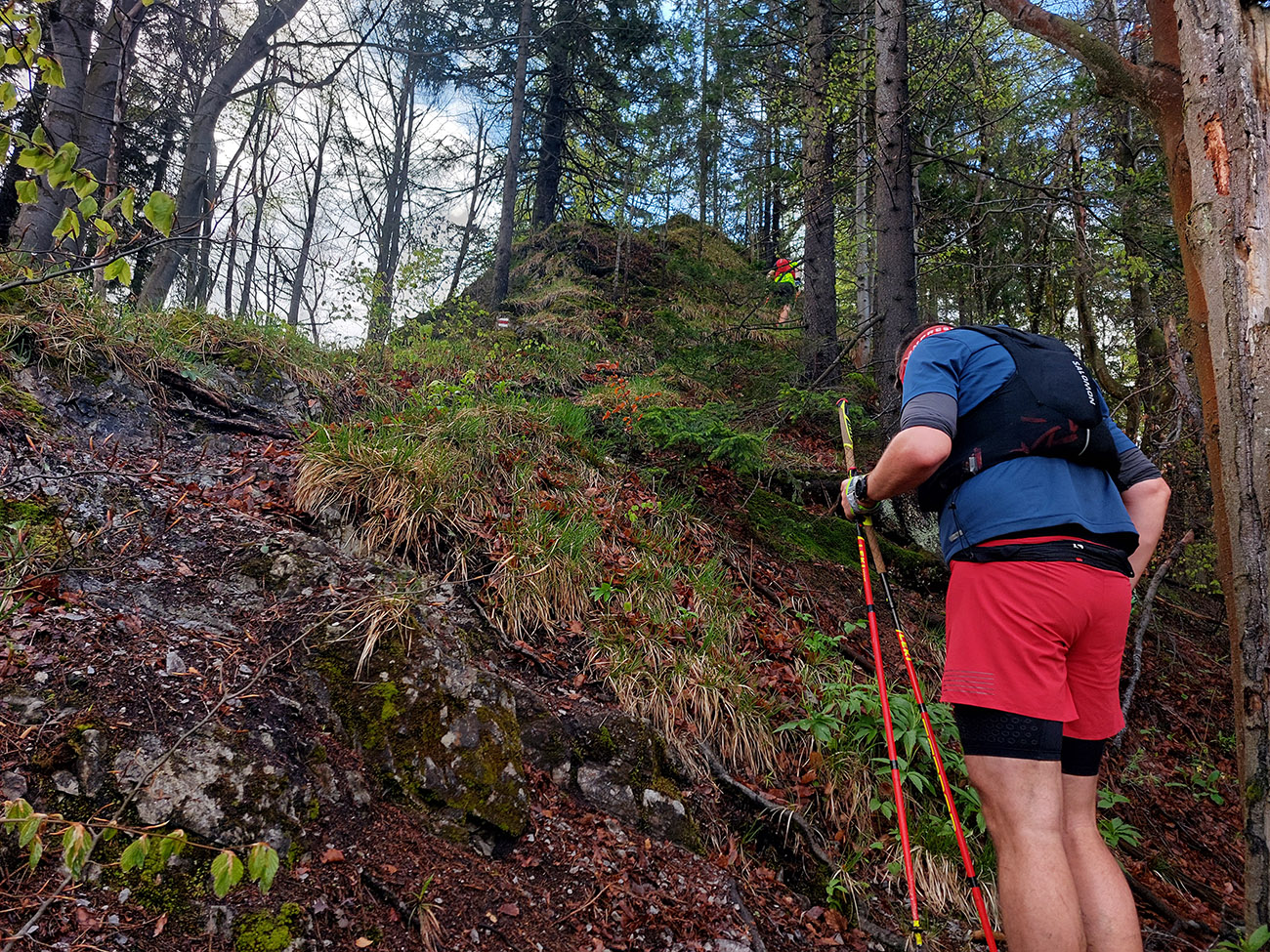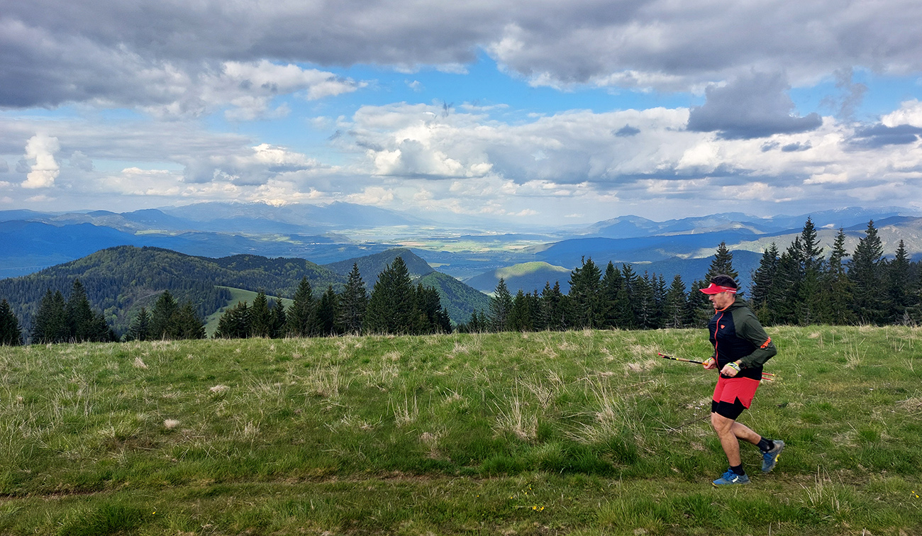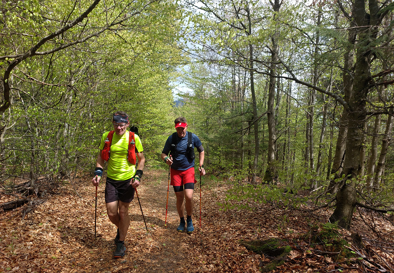 Hore slniečko, fajnúčko, pauzička - na rožky a tyčinku. Ale pohľad na hodinky nepekný: prvých 17 kilákov za štyri hodiny! Neznalý by už panikáril, my domáci vieme, že po obrátke sa to zlepší. Len či potom ešte budú sily, že? Musia byť, čelovky nemáme.