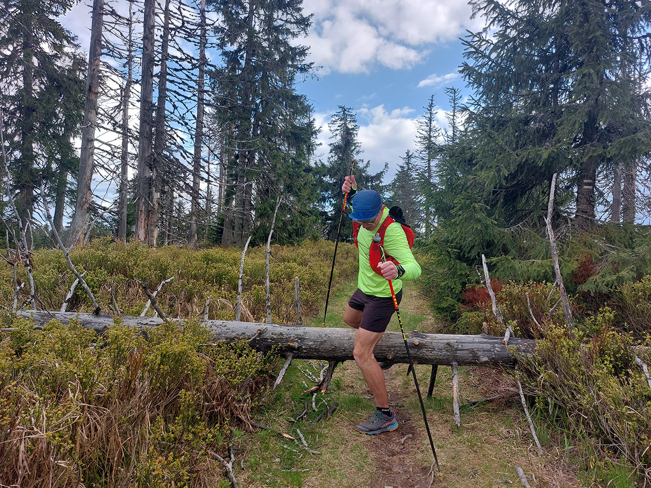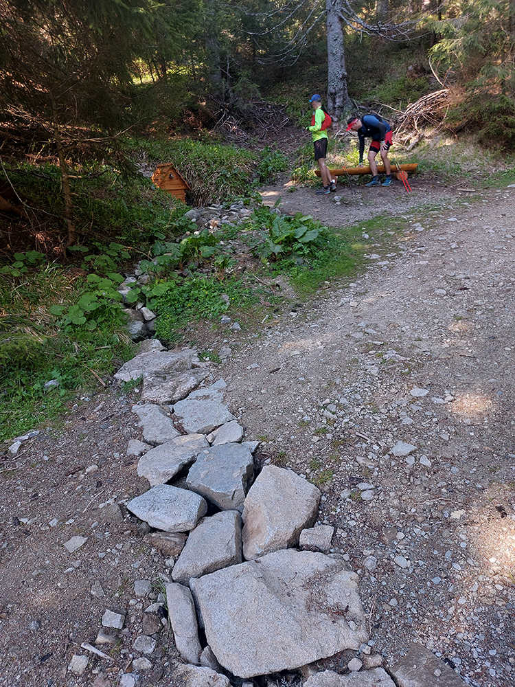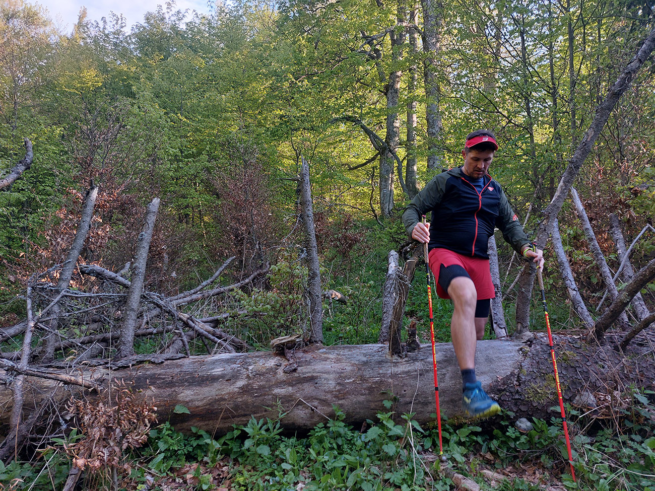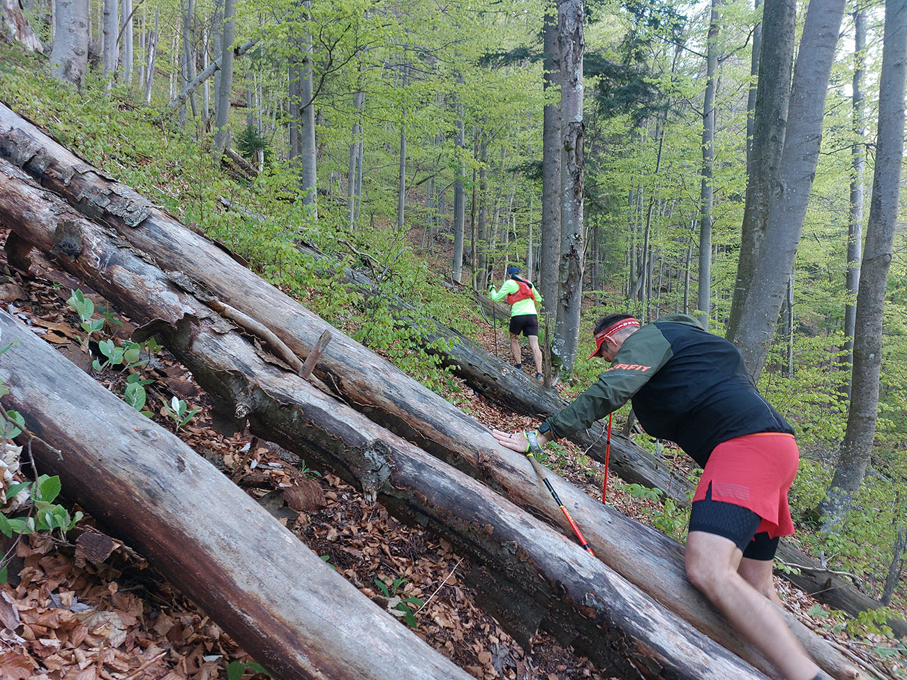 Úvod cez Korbeľku a jej spartanskú trať až ku krížu na Kope je ideál na zahriatie, cez prekážky a do strminy sme valili ešte plní síl, aj slimáka sme predbehli, to nám dvihlo egá. Hore príjemne chladno a pohľady na posledné frontové mraky, posúvajúce sa na juh. V diaľke na severe už presvitala modrá. Blatká na zostupe do Ľubochnianskeho sedla už boli po daždi tak akurát oschnuté – ani sa nelepili, ani neprášili. Len pilčíci sa na pár miestach aj na stromoch so značkami vyzúrili, tak vďaka. A popredierali sme sa cez prvú „autoumyváreň“. Našťastie len polosuchý program.