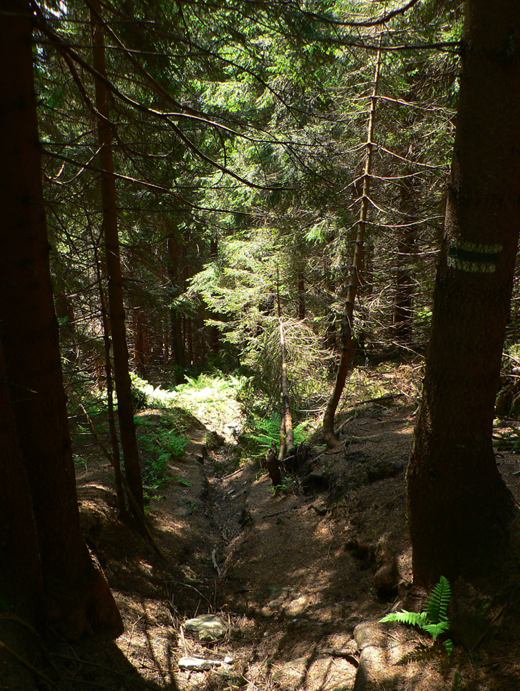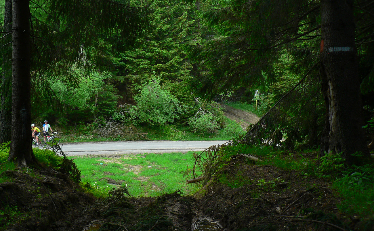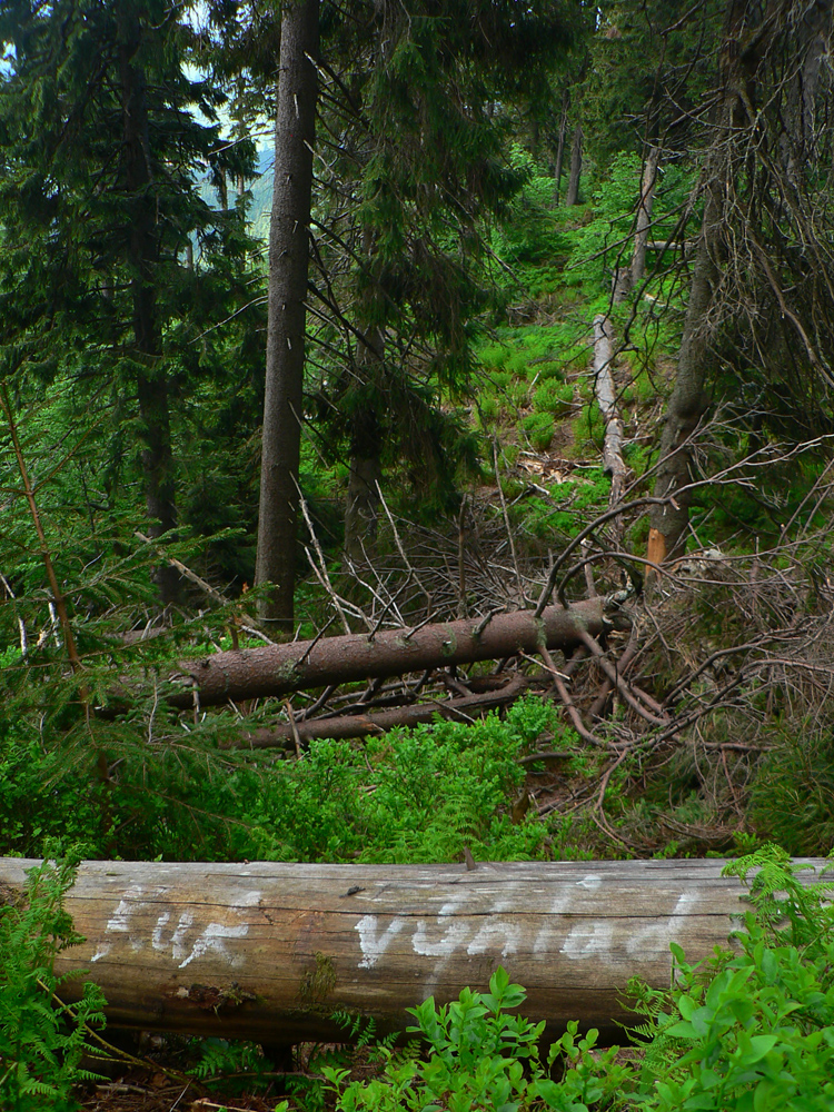 Pekné je to aj bez mega výhľadov, len teraz trochu technickejšie: aj tu sa zima poriadne vyzúrila a na niektorých miestach je chodník poriadne zahádzaný zlámanými vrcholcami, no aj celými stromami. Takže obchádzačky, preliezačky, niekde aj intenzívne, najmä od Hlásnej skalky hore na Minčol a potom okolo Paráča. Ale nech, aspoň sem menej zmrdov na motorkách pôjde, lebo stopy samozrejme nemôžu chýbať ani v NPR. A ešte by mohli organizátori Zázrivského ultra trialu (mesiac po) obtrhať zvyšné značenie, patrilo by sa.