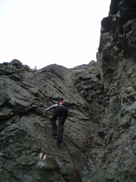 Je to proste zaistený chodník, trošku viac exponovaným terénom ako bežne. Reťaze, rebríky a schodíky, nič náročné síce, ale niektoré miesta dvíhajú hladinu adrenalínu, lebo napravo nič, naľavo dlllho nič, iba cesta vrcholom skál pred nami. Ale na to v momente zabúdate, keď vidíte ako to naši severní susedia zdolávajú v plátenkách, s dáždnikom v ruke, kabelkou a tak. Na niektorých miestach síce chýba aká taká reťaz, ale spoliehajte na adhéznosť podrážok a smelo hore.