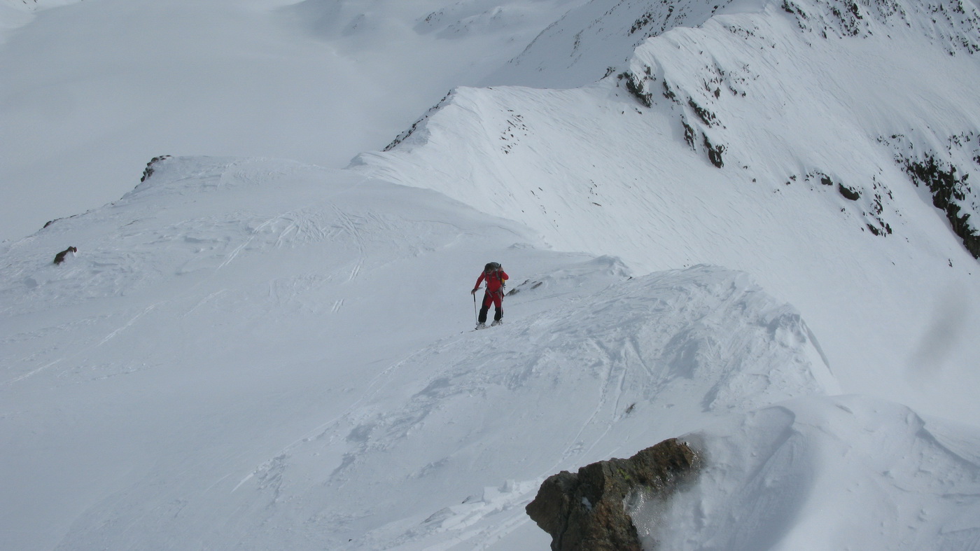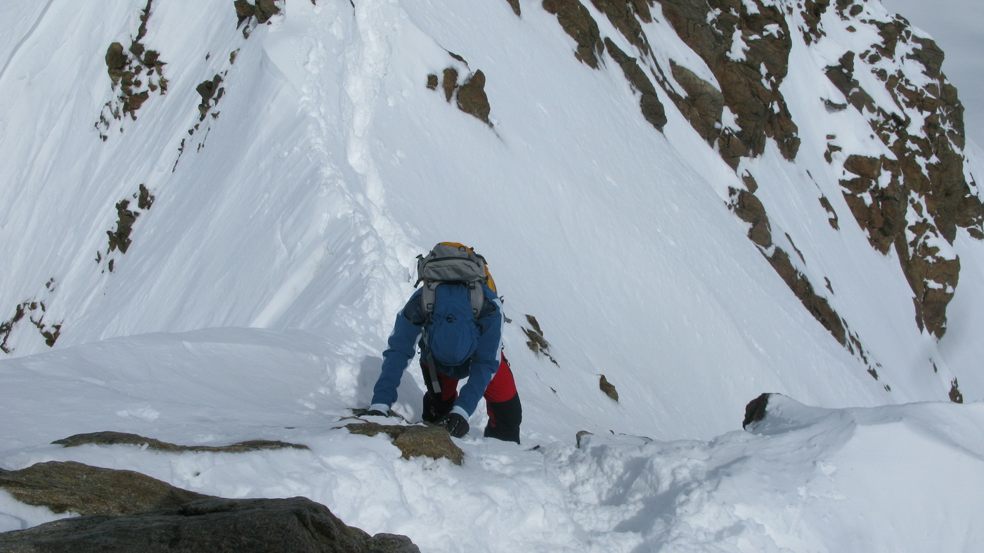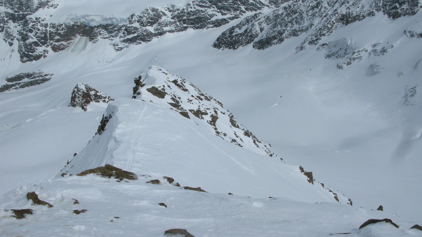 "Na hrebeni sa nepokúšajte zísť hneď dole na ľadovec, ale choďte stále po ňom až zbadáte miesto, kde je ľahký zjazd dole!" poradil nám domáci znalec Hans a jeho radu sme ocenili, lebo na mape to bolo zakreslené zle.
