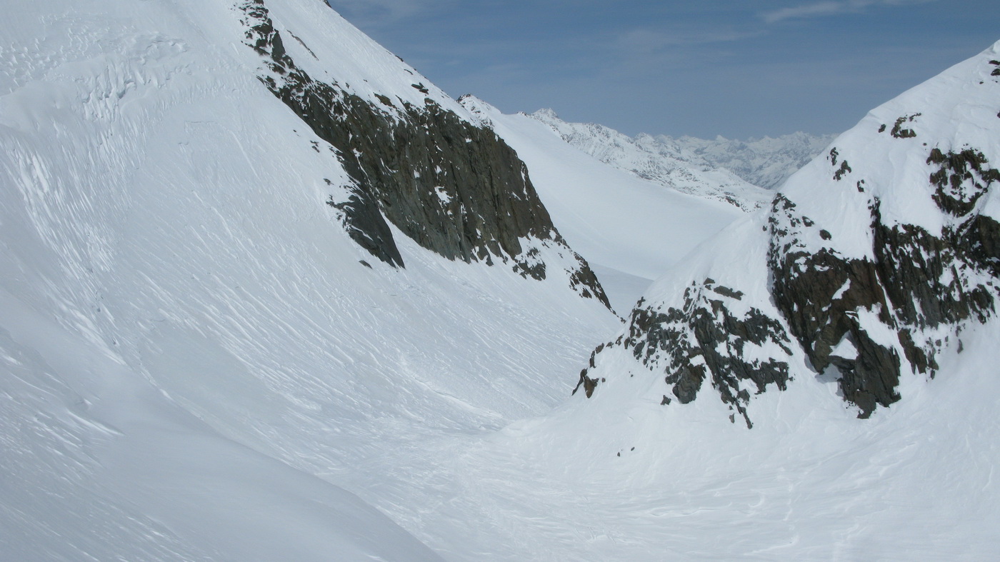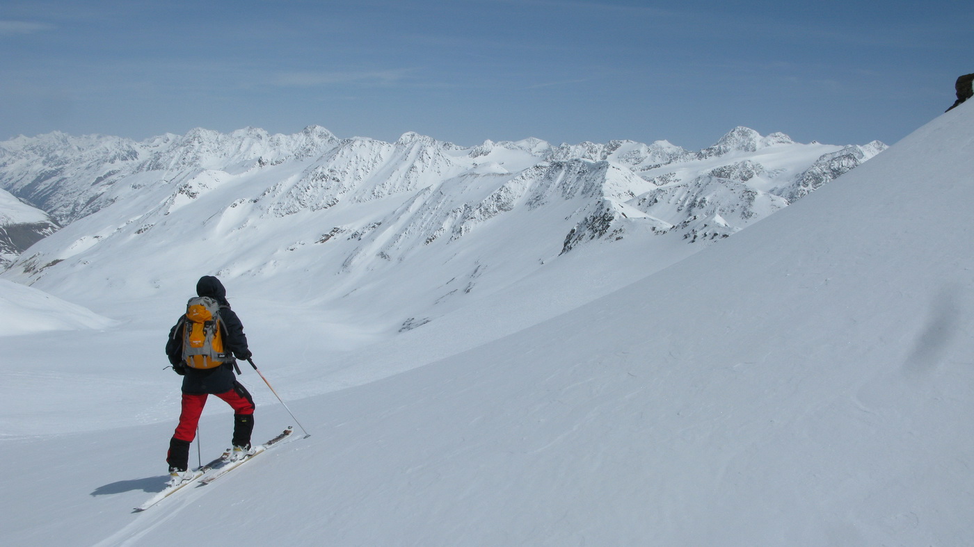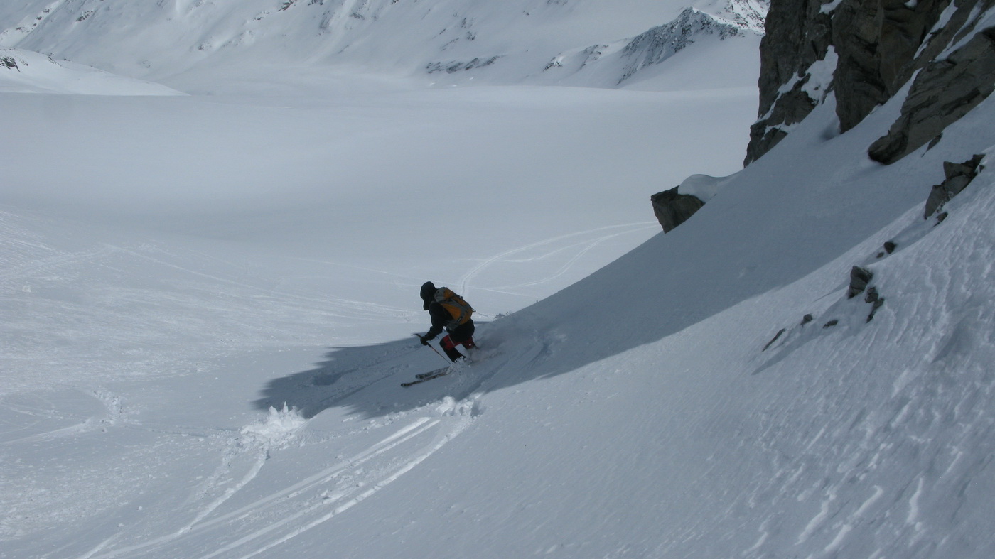 "Na hrebeni sa nepokúšajte zísť hneď dole na ľadovec, ale choďte stále po ňom až zbadáte miesto, kde je ľahký zjazd dole!" poradil nám domáci znalec Hans a jeho radu sme ocenili, lebo na mape to bolo zakreslené zle.