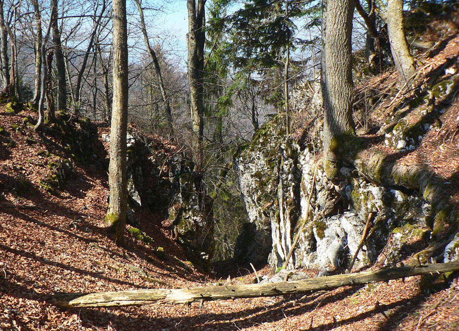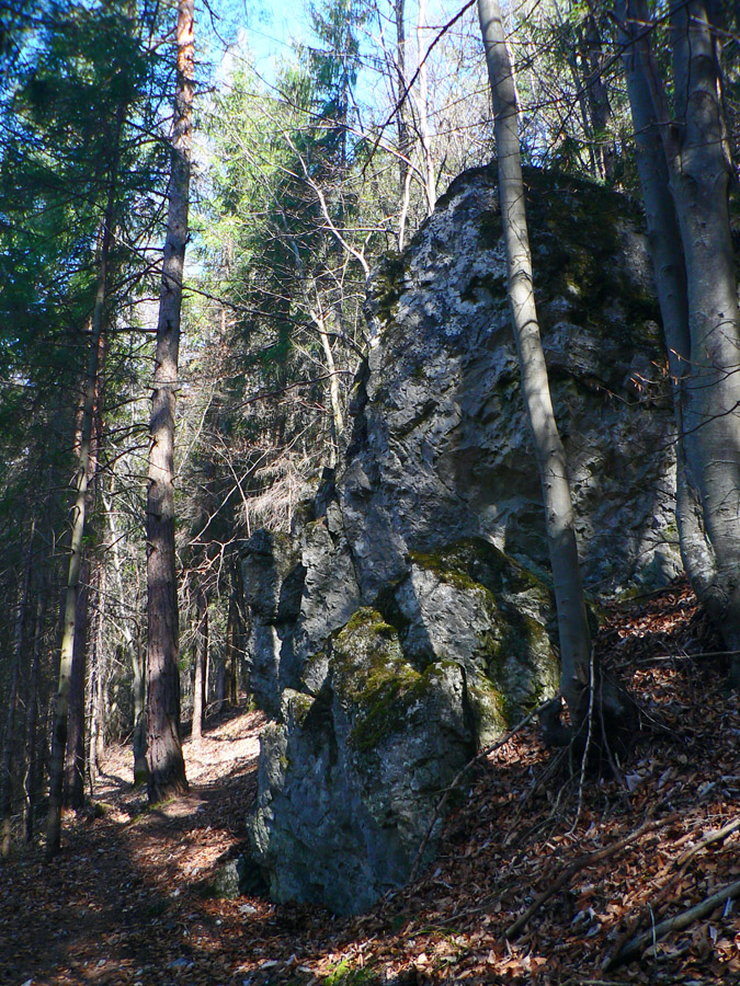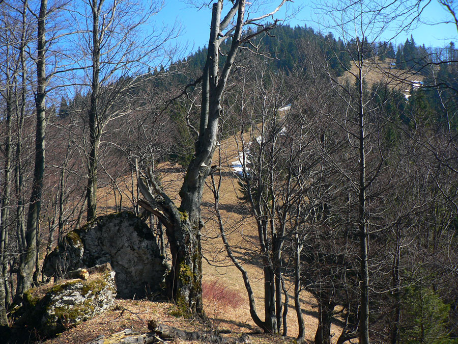Po chvíli hrebeň pretína ďalšia zvážnica, to už pod Pálenicou (1048m) a tu sa dá vybrať: doľava či doprava po nej okolo kopca. Lebo priamo vpredu sa zdá, že ďalšiemu postupu hrebeňom bráni hustá mladina. Ale práve tade treba ísť - na zvážnicu z nej schádza niekoľko prtí a les nad svahom vôbec nie je taký hustý, ako sa z cesty zdá, to len na okraji. A na temene Pálenice sa skrývajú krásne bralá, dokonca aj jeden malý „kaňon“, ktorý vedie na vrcholovú plošinu.