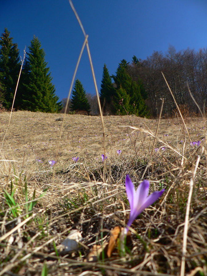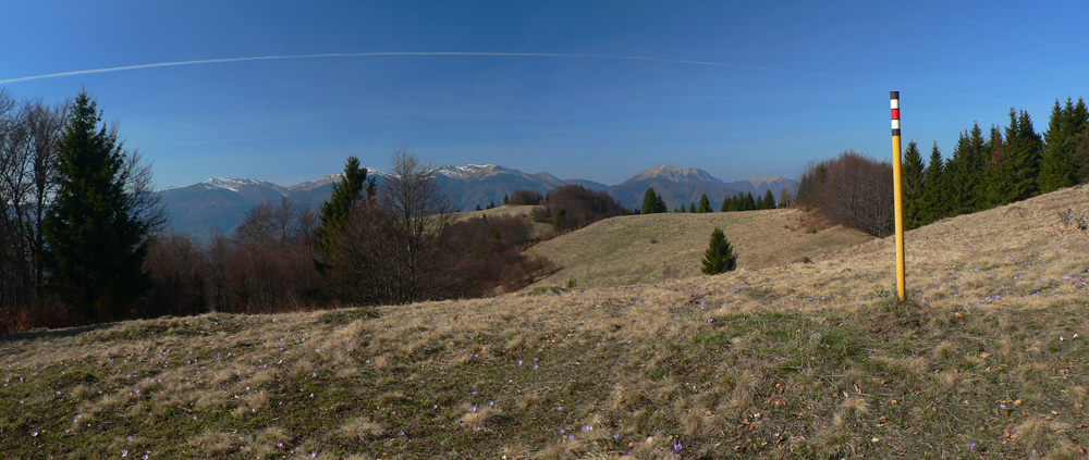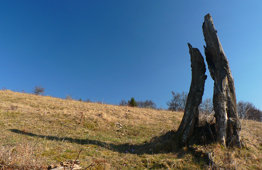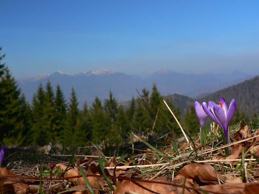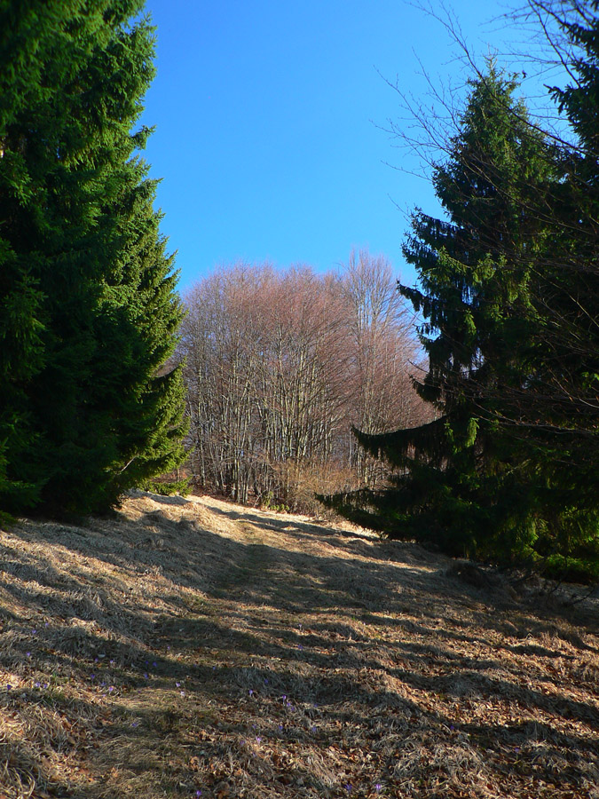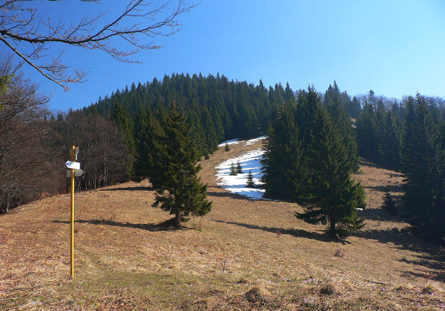 Čo ďalej? Samozrejme hore na Kľak. Veď na poludnie takej krásnej soboty škoda bežať dolu, keď voľby sú až do desiatej večer :-) Takže som si ešte užil zvyšky snehu na severnom svahu Kľaku, a potom už len sucho pod nohami v lesoch a na prebúdzajúcich sa lúkach plných šafranu. Cez Chládkové, sedlo Príslop a nolčovskú Maguru (jeden z najkrajších výhľadov na dolný Turiec a Krivánsku Fatru!) som sa dostal do Nolčova. Takto mi to z Podhradia trvalo celé asi 7 hodín, pritom skoro žiadne doliny a preveľa výhľadov - odporúčam!
