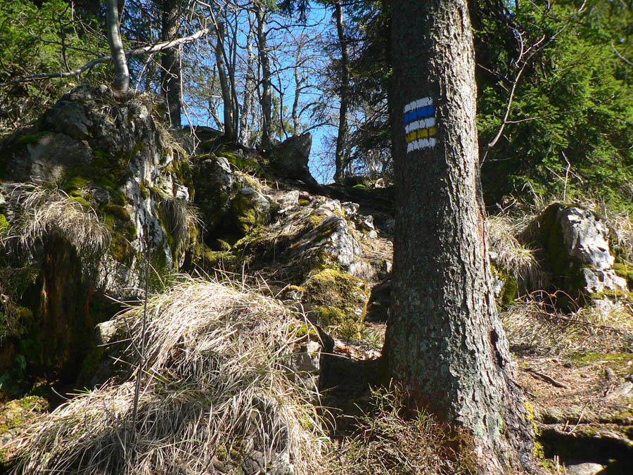 Na Sučiansky hrad (Smrekové, 890m) vedie z Podhradia zelená, je to len na hodinu a čosi. Takže keď je chuť ísť ešte na Kľak, treba sa vrátiť do dediny, preskočiť na modrú a daváj hore Hlavnou dolinou. Lenže keď sa človek pustí z hradu priamo na juh, sklesá pomedzi machom obrastené balvany zopár výškových metrov a zrazu má pod nohami chodník, miestami zreteľnejší ako ten na hlavnom veľkofatranskom hrebeni. A chodník vedie až pod Kľak a väčšinou je veľmi fotogenický.